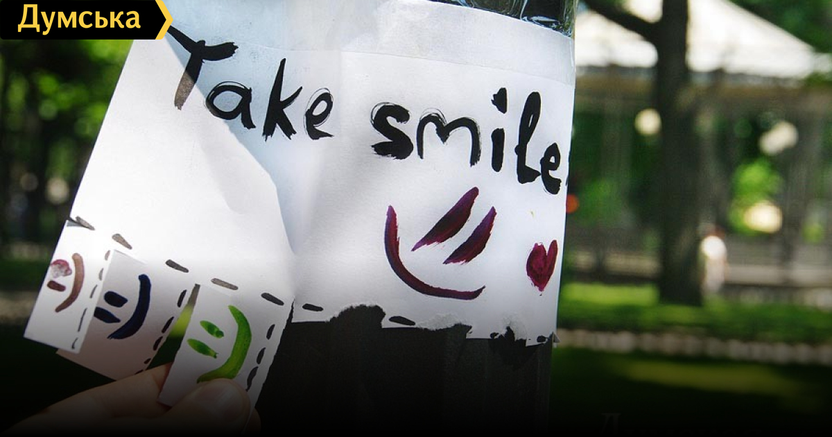 На днях на улице Дерибасовской была замечена серия любопытных объявлений. Неизвестные авторы предлагают одесситам и гостям города взять себе… улыбку.