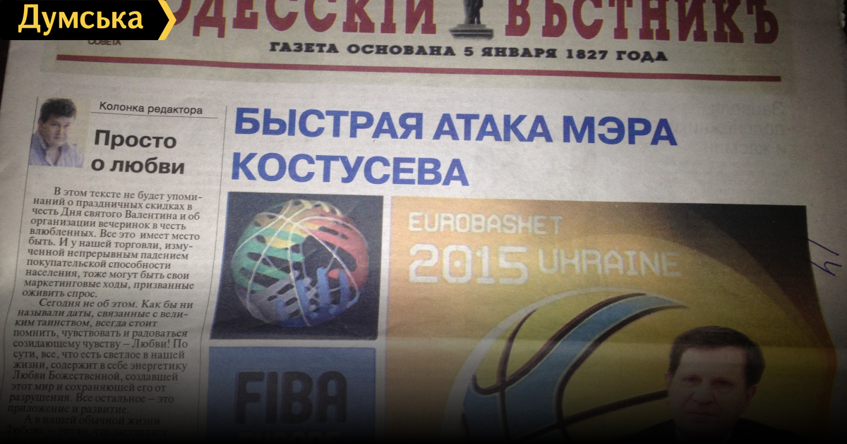 Отметим, что в этом году муниципалитет потратит на содержание своих СМИ 5,1 млн грн против 3,2 млн грн в 2012-м. Большую часть этой суммы получит «Одесский вестник». Почти весь тираж газеты не продается, а распространяется по т.н. льготной подписке среди бюджетников и пенсионеров.