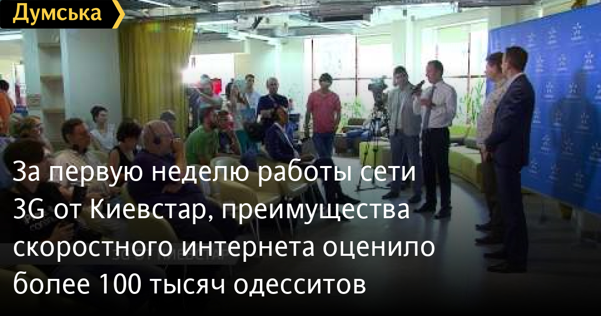 За первую неделю работы сети 3G от Киевстар, преимущества скоростного интернета оценило более 100 тысяч одесситовОдесса стала третьим городом в Украине, где запустили 3G сеть от Киевстар. Превосходное качество скоростного интернета уже оценило более 100 тысяч одесситов. Подробнее в репортаже Павла Репина СМЕРТЬ РОССИЙСКИМ ОККУПАНТАМ! Заметили ошибку? Выделяйте слова с ошибкой и нажимайте control-enter Думская ТВ. Сюжеты: