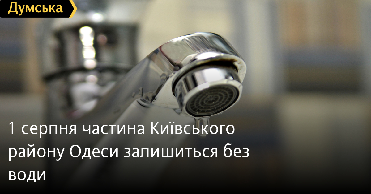 У зв'язку з необхідністю проведення ремонтних робіт на об'єктах водопроводу, 1 серпня з 09:30 до 24:00 буде припинено водопостачання в частині Київського району Одеси.