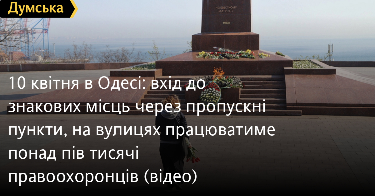 10 квітня в Одесі: вхід до знакових місць через пропускні пункти, на вулицях працюватиме понад пів тисячі правоохоронців (відео)