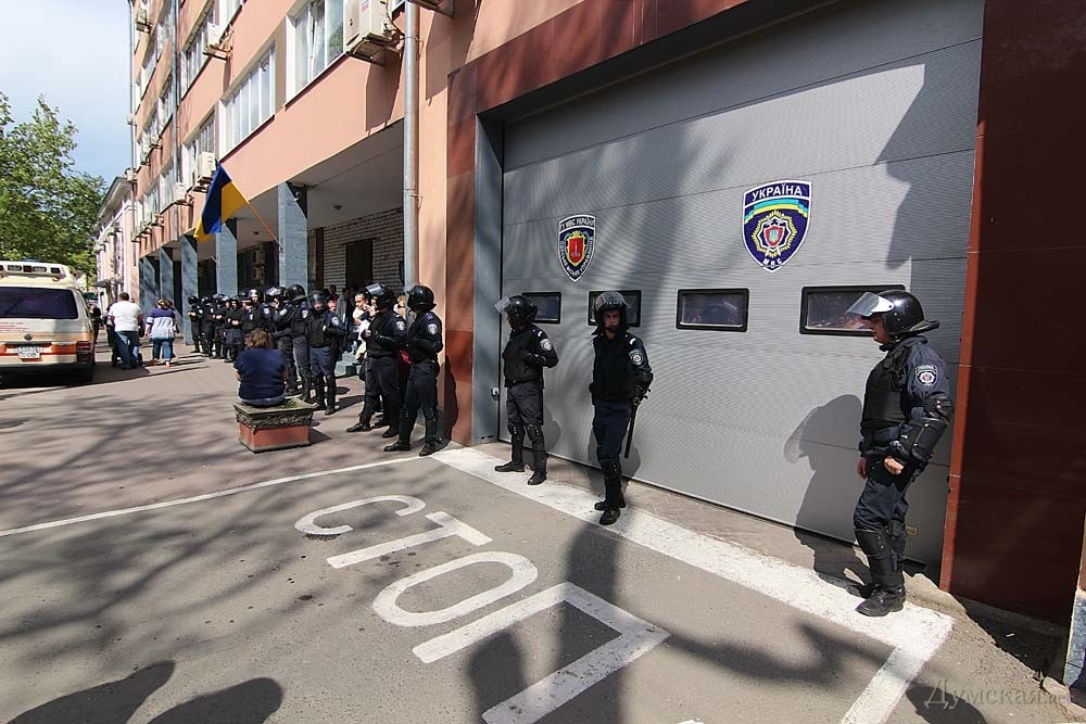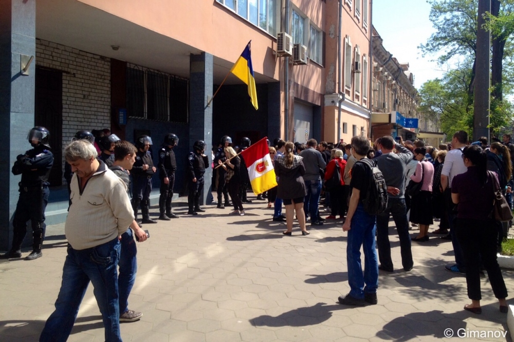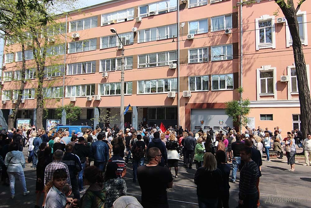 Около ста человек, пришедших сегодня на Куликово поле, решили провести пикет у здания городского управления милиции, что на Перображенской улице. Как передает корреспондент «Думской», пикет проходит мирно. Люди кричали «Немировский — убийца!», «Свободу одесситам!» и «Начальник, выходи!». Вход в здание охраняют порядка 20 работников милиции в полной экипировке. Спустя полчаса собравшиеся подписали коллективное обращение к руководителям ведомства с требованием отпустить задержанных активистов. Участок Преображенской, от Жуковского до Бунина, перекрыт. СМЕРТЬ РОСІЙСЬКИМ ОКУПАНТАМ! Помітили помилку? Виділяйте слова з помилкою та натискайте control-enter |