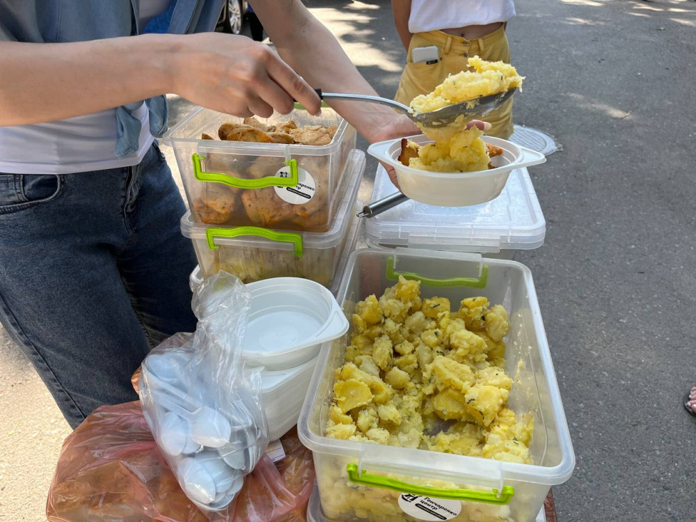 Сотню горячих обедов для пенсионеров и переселенцев раздали менее чем за день волонтеры Гончаренко центра на улице Одесской.