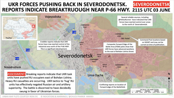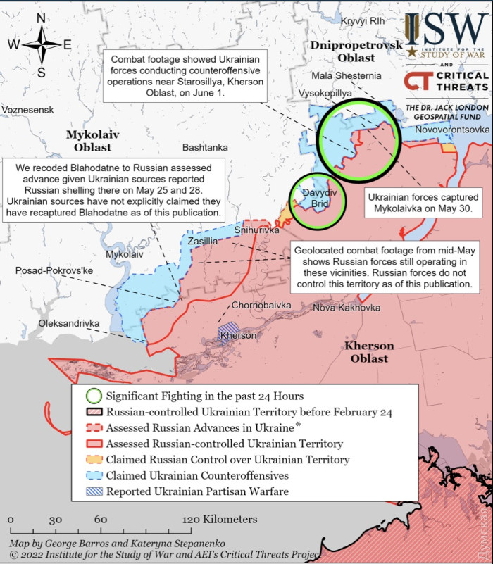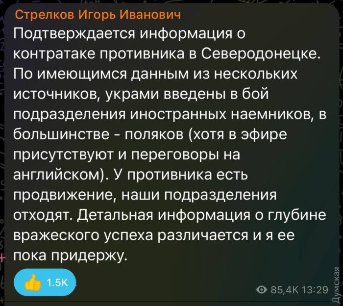 101-й день большой войны: Силы обороны уничтожают оккупантов в Северодонецке и выдавливают в Херсонской областиЗавершается уже сто первый день полномасштабного российского вторжения. Агрессоры не могут достичь своих стратегических задач, отчаянно бросают в топку свои войска на Донбассе. Защитники Украины, использовав ошибки противника, перегруппировались и возобновили контрнаступательные действия. Недавно мы пережили тяжелые дни плохих и гнетущих новостей о развитии российского наступления сразу по нескольким направлениям в Донецкой и Луганской областях. Сейчас же ситуация начала понемногу меняться в нашу пользу, поэтому можем порадовать вас, снова возвращаясь к любимой рубрике – «осторожный оптимизм». Главная хорошая новость, а скорее, сформировавшееся на основе многочисленных факторов ощущение заключается в том, что, кажется, российские силы на данном этапе войны начали иссякать, и оккупанты уже не могут продолжать не только наступать, но и удерживать ранее занятые территории. Посмотрим на главное поле битвы последних недель. Противник так и не смог захватить Северодонецк и, кажется, уже и не сможет. Полагаем, что новости об отчаянном и практически обреченном состоянии этого города были в том числе весьма умелой информационной операцией. Оккупанты поверили в свои успехи и браво забежали в центр Северодонецка, где их ждал классический «огневой мешок» от защитников, предварительно занявших подготовленные позиции. Наши источники с фронта, военные корреспонденты и аналитики в один голос говорят, что вражеские потери весьма и весьма «значительны». Настолько, что со вчерашнего дня россиянам пришлось уносить ноги, а гарнизон, оседлав убегающую орду, вернул себе как минимум еще 20% территории города. Сейчас Силы обороны контролируют больше половины временного административного центра Луганской области и продолжают громить захватчиков. Вчера туда прибыл на подмогу «Иностранный легион» и еще несколько подразделений Вооруженных сил Украины. Это усиление группировки говорит о том, что Северодонецк никто сдавать не собирается. Кроме того, у командования есть уверенность, что город в окружение не попадет. Еще наши войска выбили врагов из поселка Метелкино на восточных окраинах Северодонецка, а западнее города вышли на объездную дорогу Р-66, тем самым отрезав группировку оккупантов в селе Воеводовка. То есть теперь уже над российскими войсками нависает угроза окружения и дробления на отдельные очаги сопротивления. Очень тонкая и красивая операция. Сейчас, по словам главы Северодонецкой городской военной администрации Александра Стрюка, цель Сил обороны – полностью освободить город от захватчиков. Сражающиеся в районе Северодонецка украинские подразделения проявляют настоящий героизм. Например, сегодня стала известна история четырех пограничников с позывными «Рубеж», «Мускат», «Джони» и «Троянда», которые в ближнем бою из гранатометов сожгли два танка и БМП врага, подбили еще один танк и заставили его экипаж отступить. Особо приятно, что, кроме радости от украинских и западных военных аналитиков, происходящие в Северодонецке события вызвали очередную мощную серию «воя на болотах» у наших «визави». Информацию об отступлении российских войск весьма красочно подтвердил известный российский террорист Игорь Стре