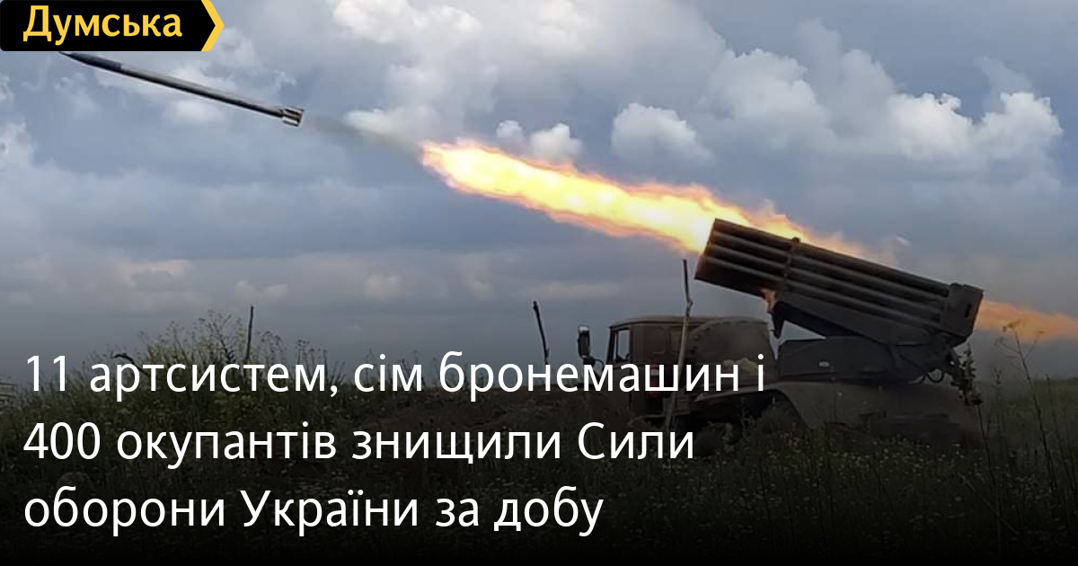 Також, за даними Генерального штабу Збройних сил України, вчора було знищено 11 артилерійських систем ворога (3425).