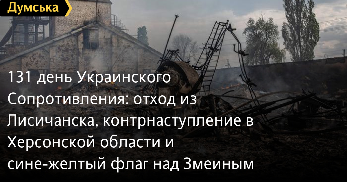 Завершаются 131-е сутки героического сопротивления украинского народа полномасштабному вторжению нацистской россии. Основные события по-прежнему разворачиваются на востоке нашей страны, где противнику удалось достичь относительно серьезных успехов, которые, впрочем, нельзя назвать решительными и даже многообещающими. Происходящее все сильнее напоминает второй этап Первой мировой войны, а то и ирано-иракской: это еще не настоящий позиционный тупик, но все идет к нему