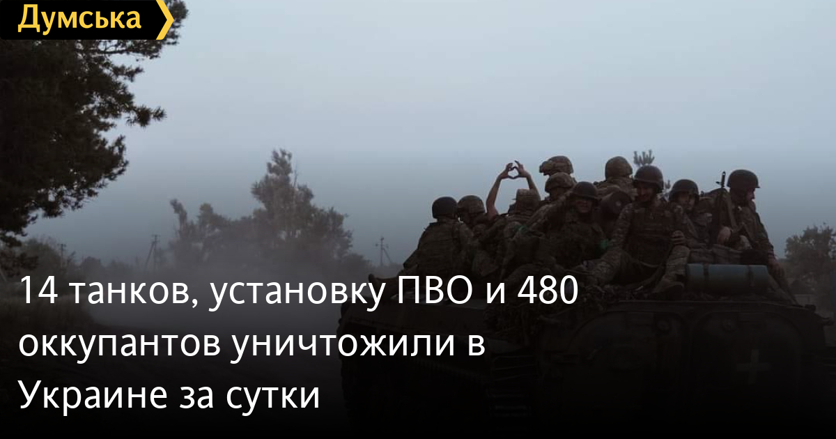 14 танков, установку ПВО и 480 оккупантов уничтожили в Украине за суткиСилы обороны Украины 29 июля уничтожили еще 480 российских солдат и офицеров, вторгшихся в нашу страну. Общий счет вражеских потерь за все время полномасштабной войны составляет уже 245 тысяч 700 оккупантов. В Генеральном штабе Вооруженных сил Украины сообщили, что вчера наши защитники подбили 14 танков (4205 за все время), 11 боевых бронированных машин (8178), 28 грузовиков и автоцистерн (7275), одну единицу спецтехники (711). Также враг лишился девяти артиллерийских систем (4795) и одной установки ПВО (459). Наши зенитчики сбили четыре беспилотника оперативно-тактического уровня (4011). СМЕРТЬ РОССИЙСКИМ ОККУПАНТАМ! Заметили ошибку? Выделяйте слова с ошибкой и нажимайте control-enter |
