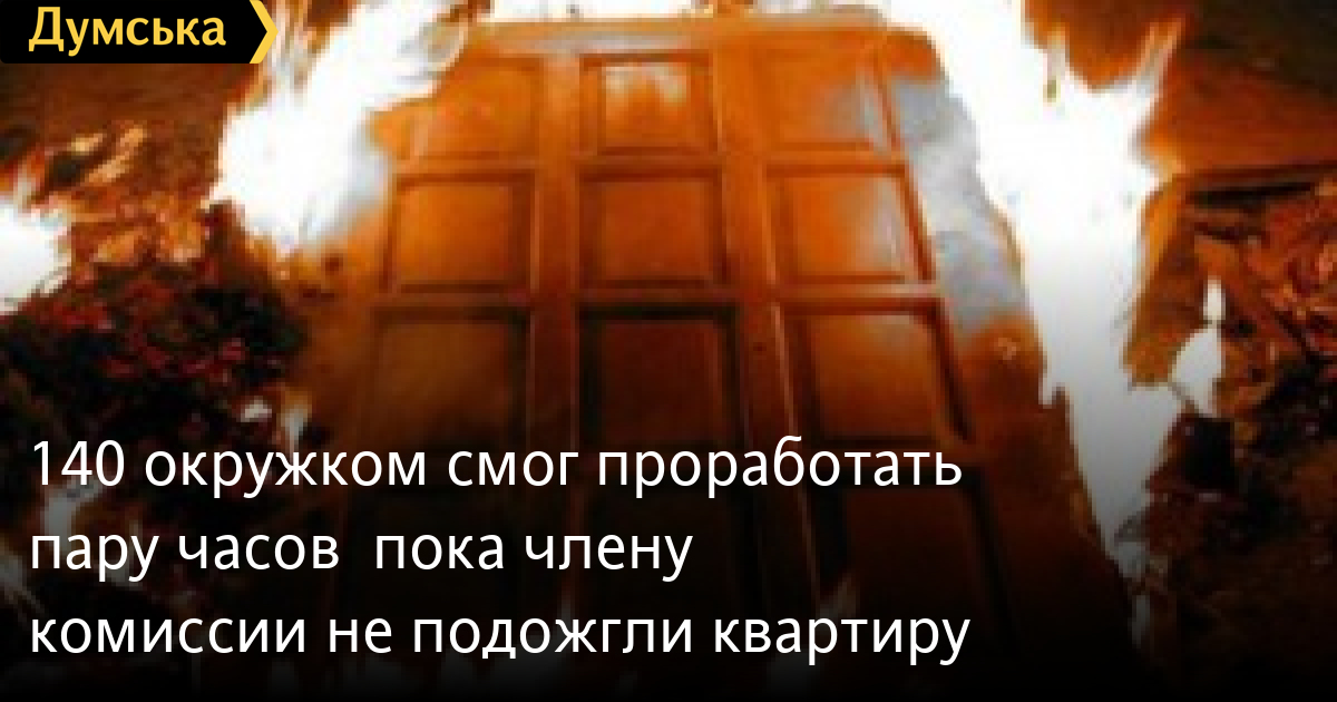 Об этом сообщает Одесская областная организация Комитета избирателей Украины. По данным КИУ, окружком приступил к рассмотрению жалоб от участковых комиссий, однако около 16 часов одному из членов ОИК позвонили близкие и сказали, что неизвестные подожгли дверь его квартиры.