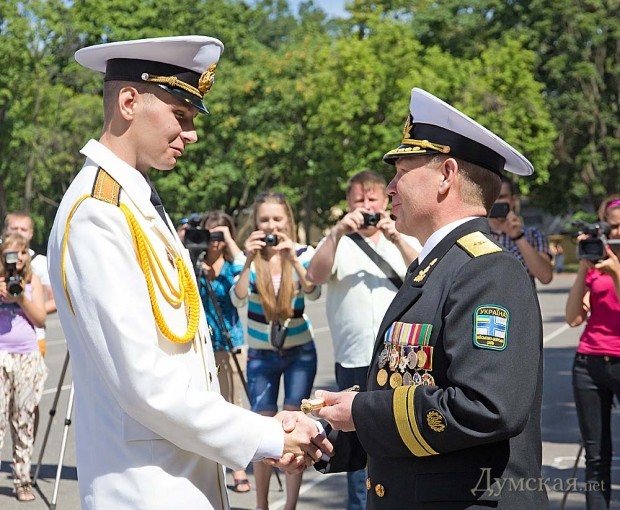 Как передает корреспондент «Думской», первые офицерские погоны получили 135 выпускников одесского вуза и передислоцированной из Севастополя Академии военно-морских сил имени П. С. Нахимова.