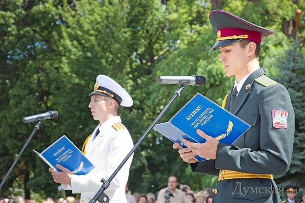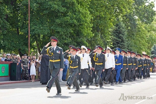 «Этот выпуск особенный, так как сейчас на территории нашей страны идут боевые действия, и часть вчерашних курсантов примут в них участие, — подчеркнул мэр Одессы Геннадий Труханов. — На ваши плечи ложится боевая задача любой ценой отстоять целостность и суверенитет нашего государства».