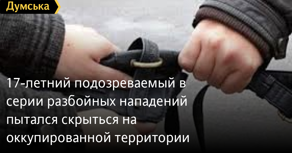 17-летний подозреваемый в серии разбойных нападений пытался скрыться на оккупированной территории17-летний житель Измаильского района Одесской области, которого подозревают в серии разбойных нападений, пытался скрыться на временно оккупированной территории, но был схвачен правоохранителями. Как сообщили в полиции, парню инкриминируют три нападения на женщин. По данным следствия, он отбирал у потерпевших мобильные телефоны, деньги и другое ценное имущество. Когда полицейские объявили измаильчанину о подозрении и направили обвинительный акт в суд, он сбежал. Подозреваемого задержали только на линии разграничения. Правоохранители доставили его в суд, который избрал меру пресечения в виде содержания под стражей. СМЕРТЬ РОСІЙСЬКИМ ОКУПАНТАМ! Помітили помилку? Виділяйте слова з помилкою та натискайте control-enter |