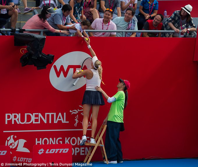 В благодарность Ястремская задержалась после матча, чтобы раздать автографы болельщикам и даже попросила у работников арены стул, чтобы дотянуться до маленькой фанатки и лично в руки передать подписанный мяч: —