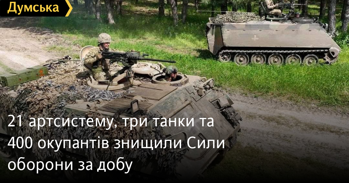 За даними Генштабу Збройних сил України, також учора наші військові спалили 21 артилерійську систему (3339 за весь час) і п'ять реактивних систем залпового вогню противника (570).