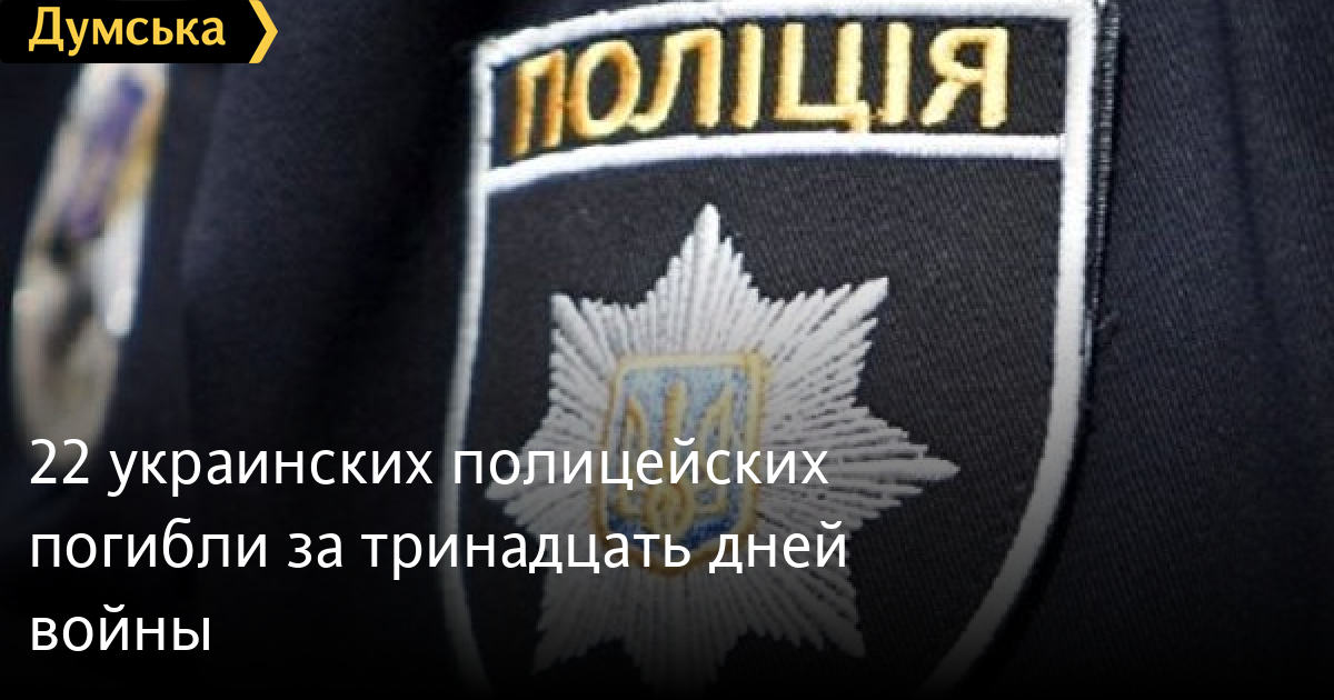 За тринадцать дней полномасштабного вторжения российских оккупантов на территорию Украины погибли 22 сотрудника полиции, 88 получили тяжелые ранения, семеро пропали без вести, трое взяты в плен. Все - во время выполнения служебных задач.