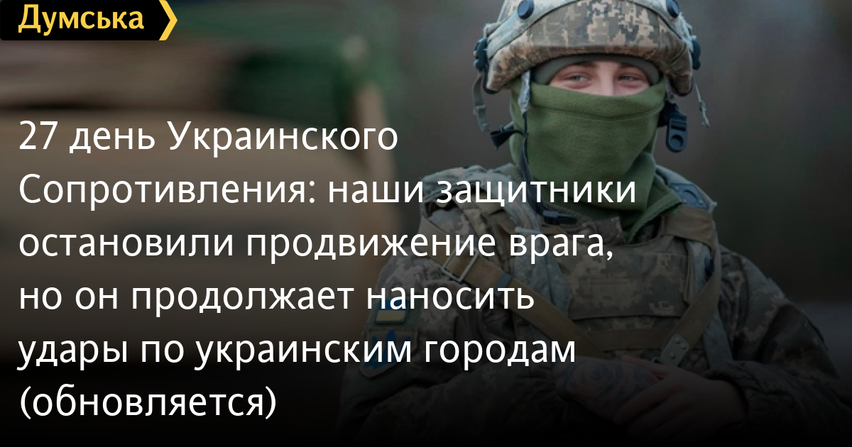 ОБНОВЛЕНО В 07:31. Оперативную обстановку на фронтах обнародовал Генеральный штаб ВС Украины по состоянию на утро 27 суток героического противостояния Украинского народа российскому военному вторжению.
