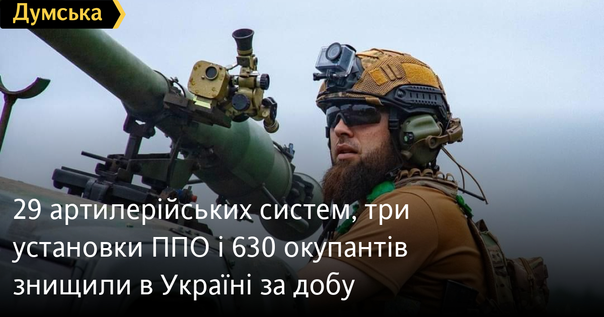 За даними Генерального штабу Збройних сил України, наші захисники вчора знищили 29 ворожих артилерійських систем (4658 від початку вторгнення), чотири реактивні системи залпового вогню (697).