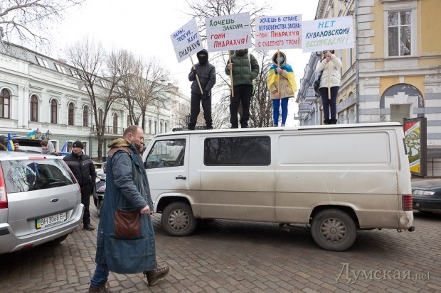 В целом акция прошла мирно. Представители Автомайдана заблокировали движение на перекрестке Пушкинской и Дерибасовской, показательно сложили перед входом в прокуратуру автопокрышки, после чего потребовали выйти к ним прокурора области Андрея Приза.