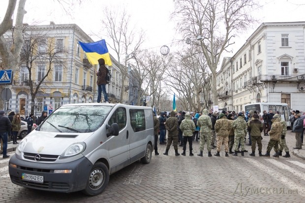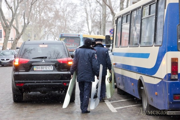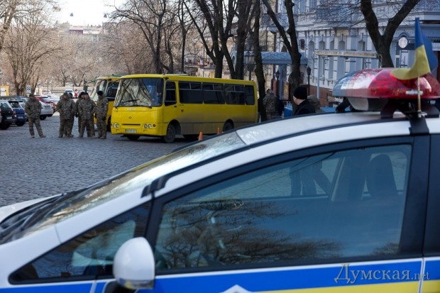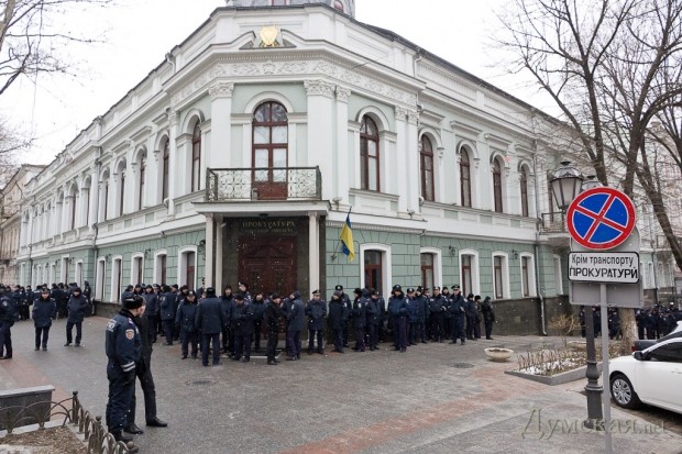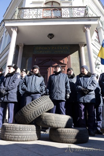 Во избежание провокаций одесские правоохранители с самого утра окружили здания областной прокуратуры на Пушкинской и облУВД на Еврейской. Кроме милиции, на месте находились автобусы с бойцами батальона «Шторм» и Нацгвардии.