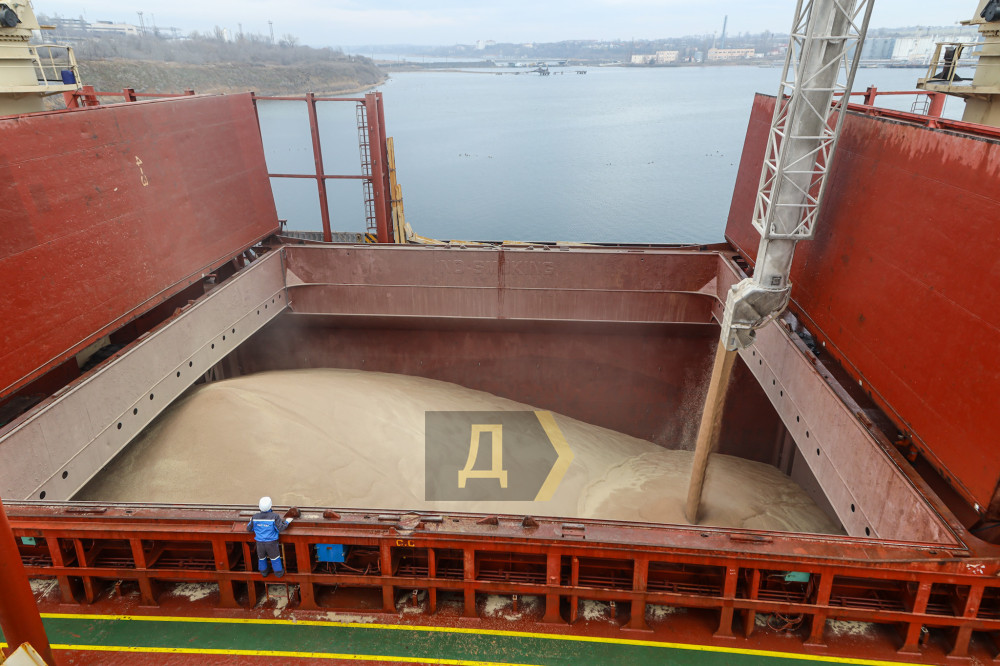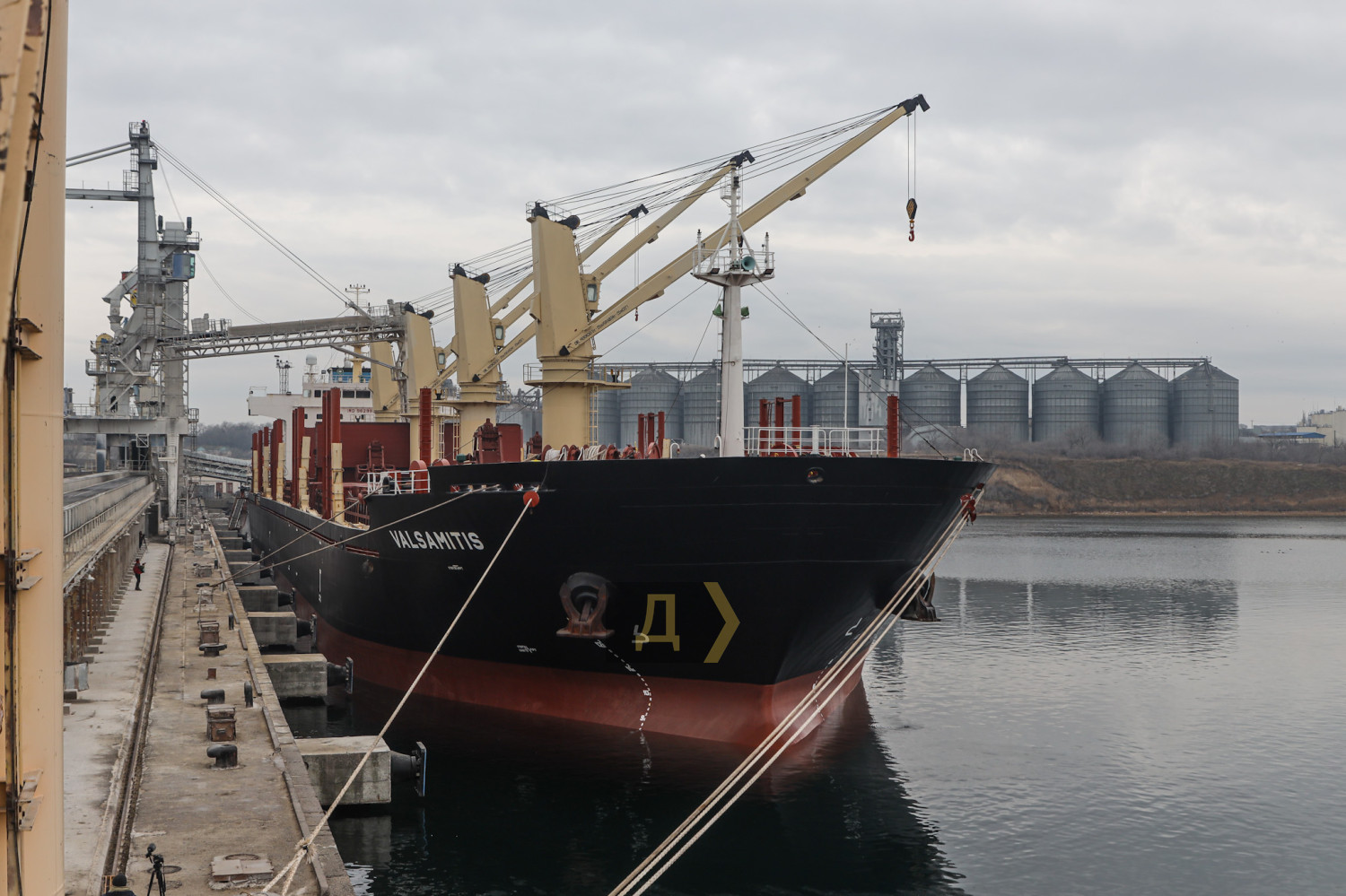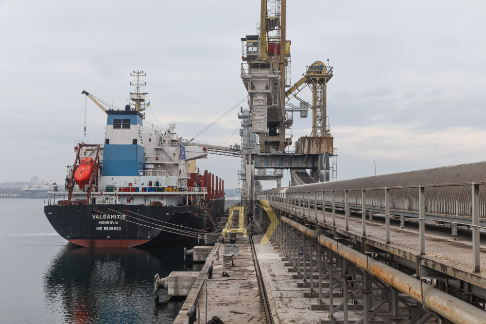 Балкер VALSAMITIS, який має доставити українську пшеницю до Кенії та Ефіопії у рамках програми Grain from Ukraine, закінчують завантажувати на одному з причалів порту Чорноморськ.