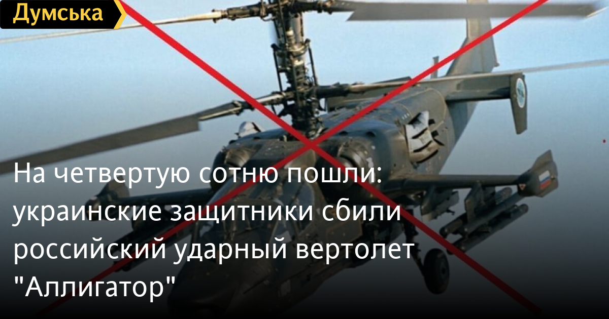 На четверту сотню пішли: українські захисники збили російський ударний вертоліт «Алігатор»Ударний російський вертоліт Ка-52 «Алігатор» збили Сили оборони України 12 червня. Про це повідомляє Генеральний штаб Збройних сил України. Ворожий вертоліт був збитий у Запорізькій області. Зазначимо, що цей «Алігатор» став ювілейним, трьохсотим, російським гелікоптером, який українські захисники збили з початку повномасштабного вторгнення. СМЕРТЬ РОСІЙСЬКИМ ОКУПАНТАМ! Помітили помилку? Виділяйте слова з помилкою та натискайте control-enter |