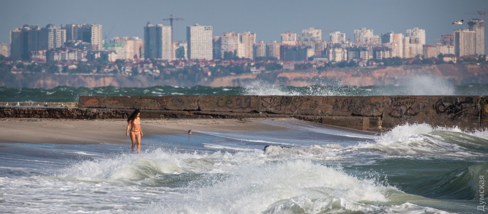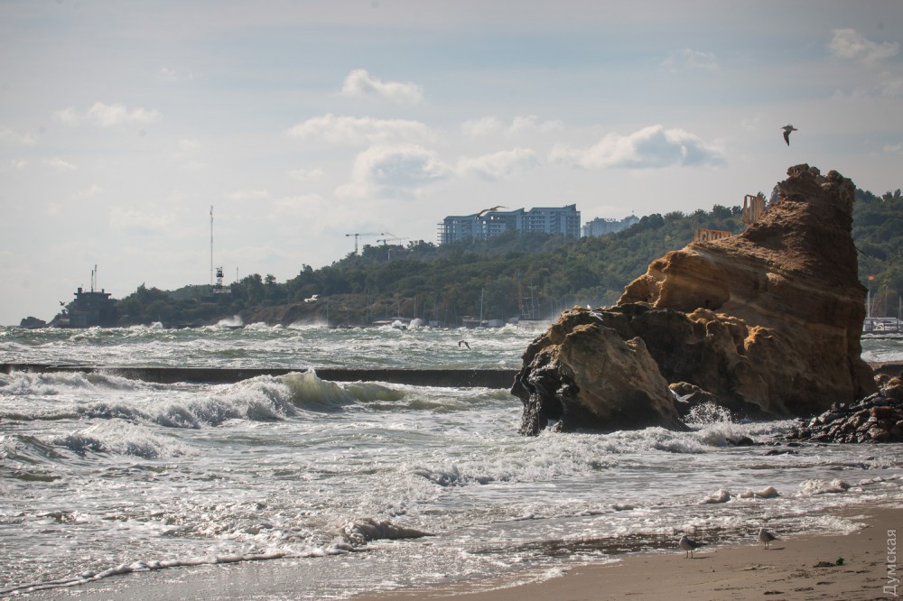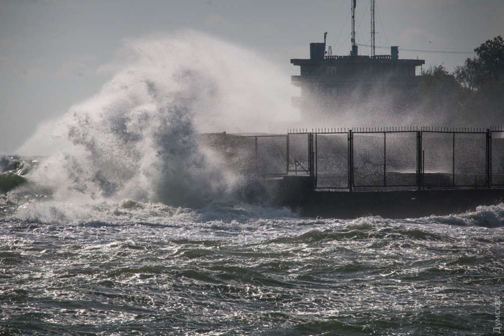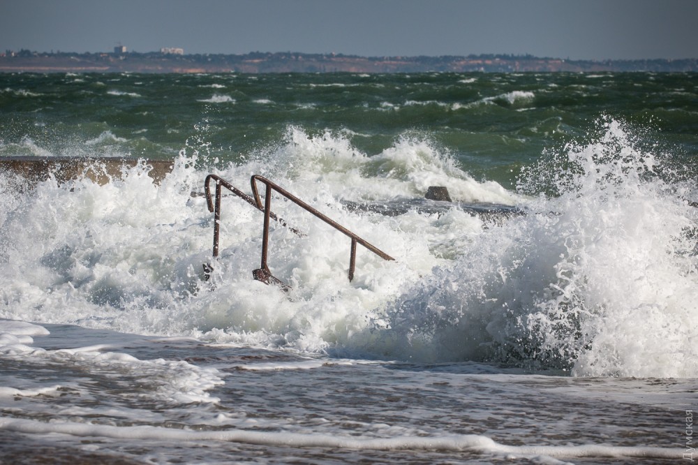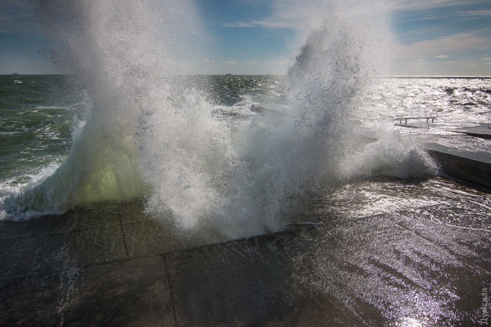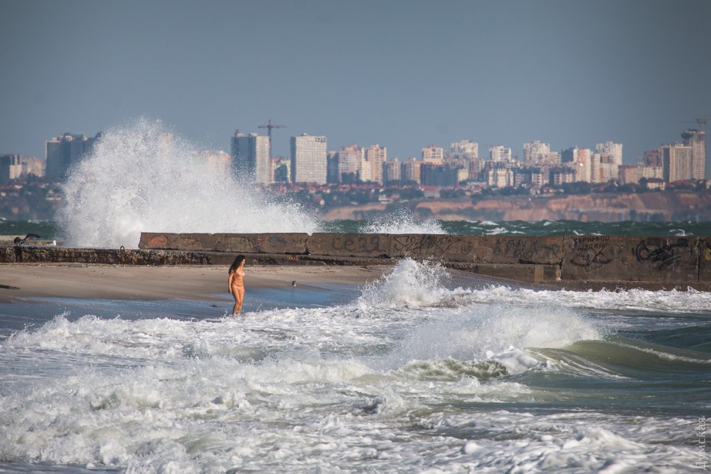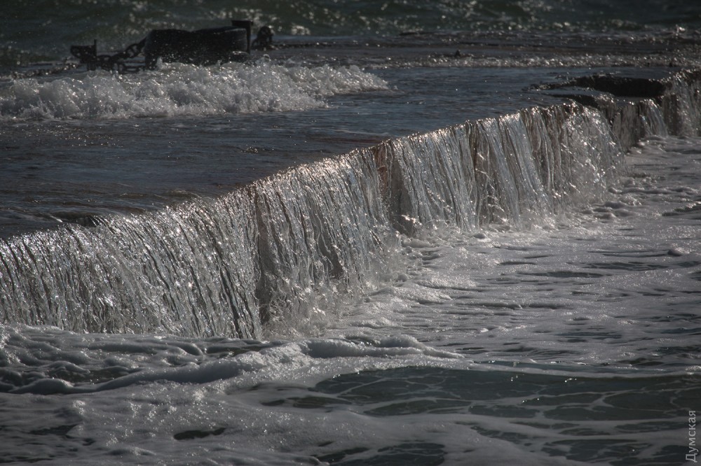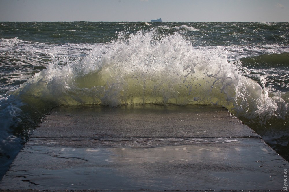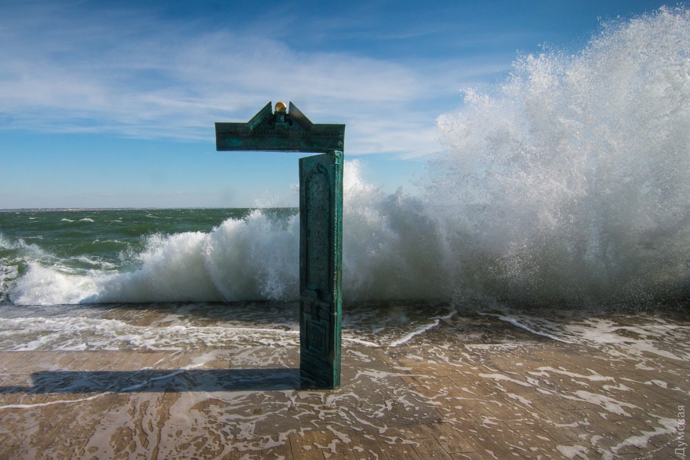 Осенний шторм бушует в эти дни в Одесском заливе. Огромные волны с одинаковой силой обрушиваются и на песчаные пляжи, и на бетонные набережные, и на арт-объекты. Впрочем, скульптурная композиция Михаила Ревы «Дом солнца» достойно выдерживает удары стихии.