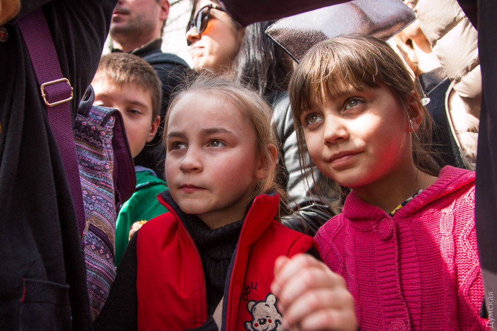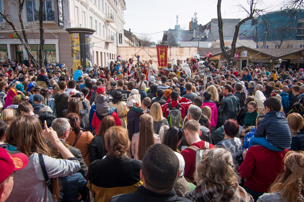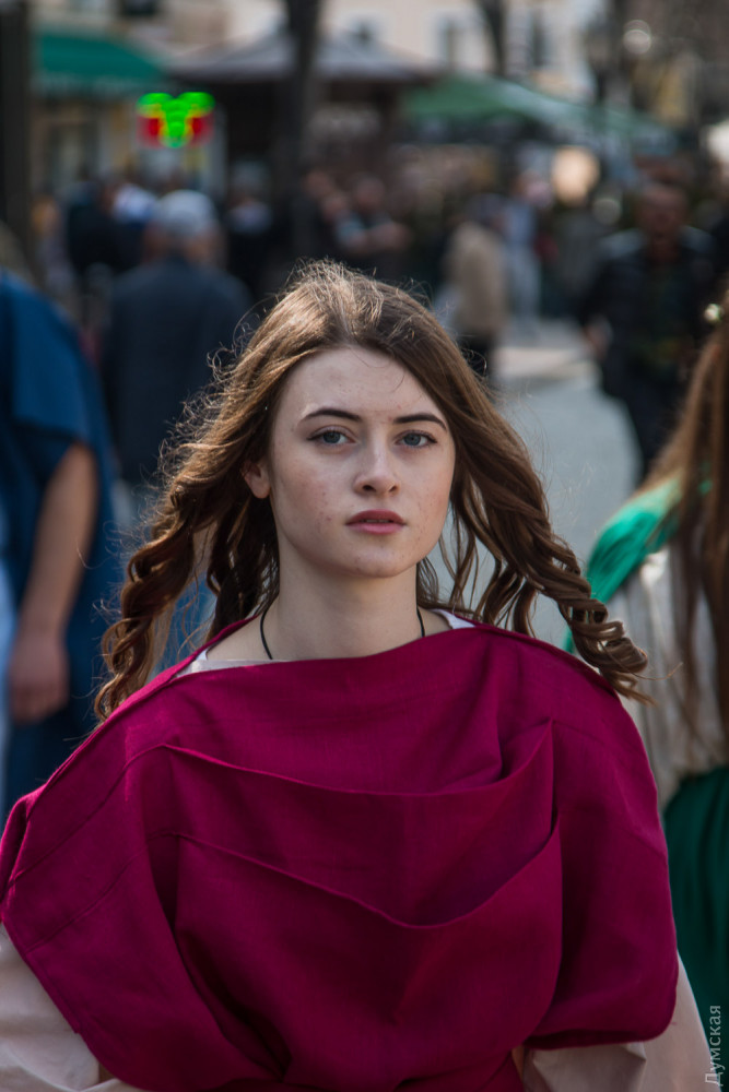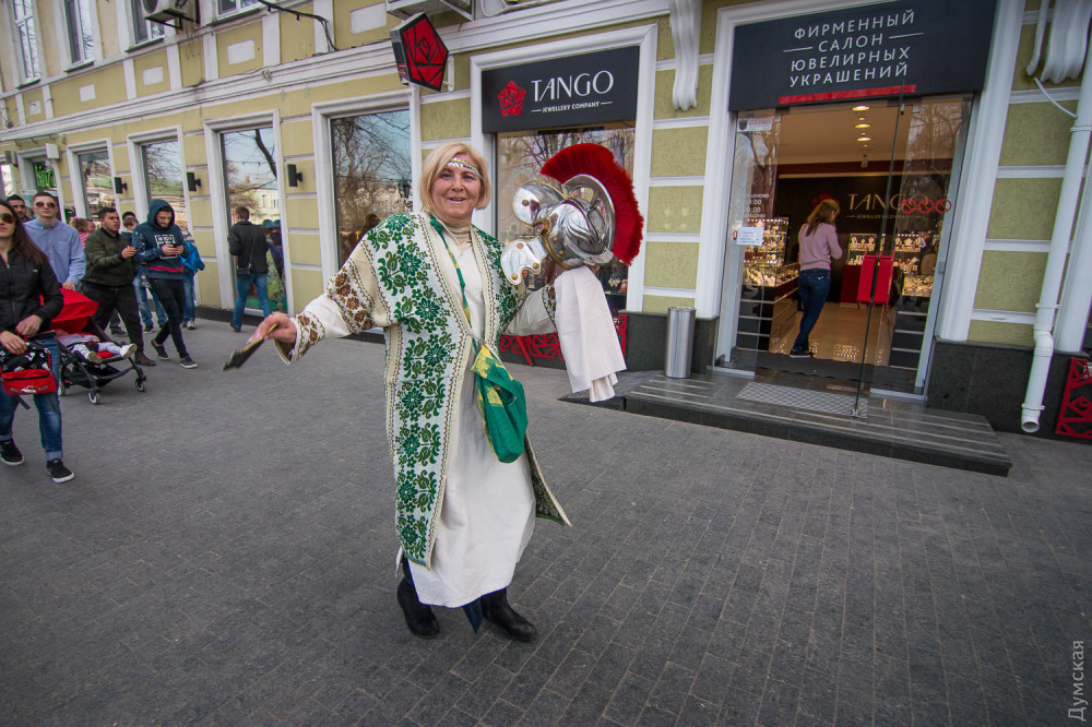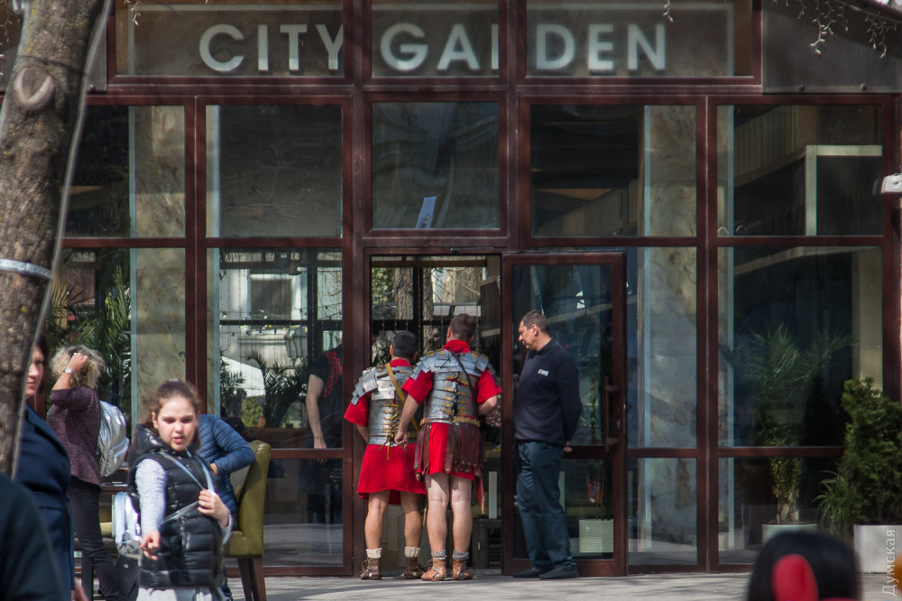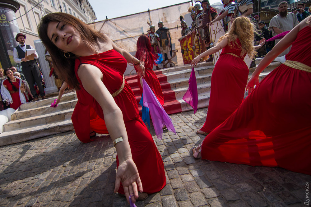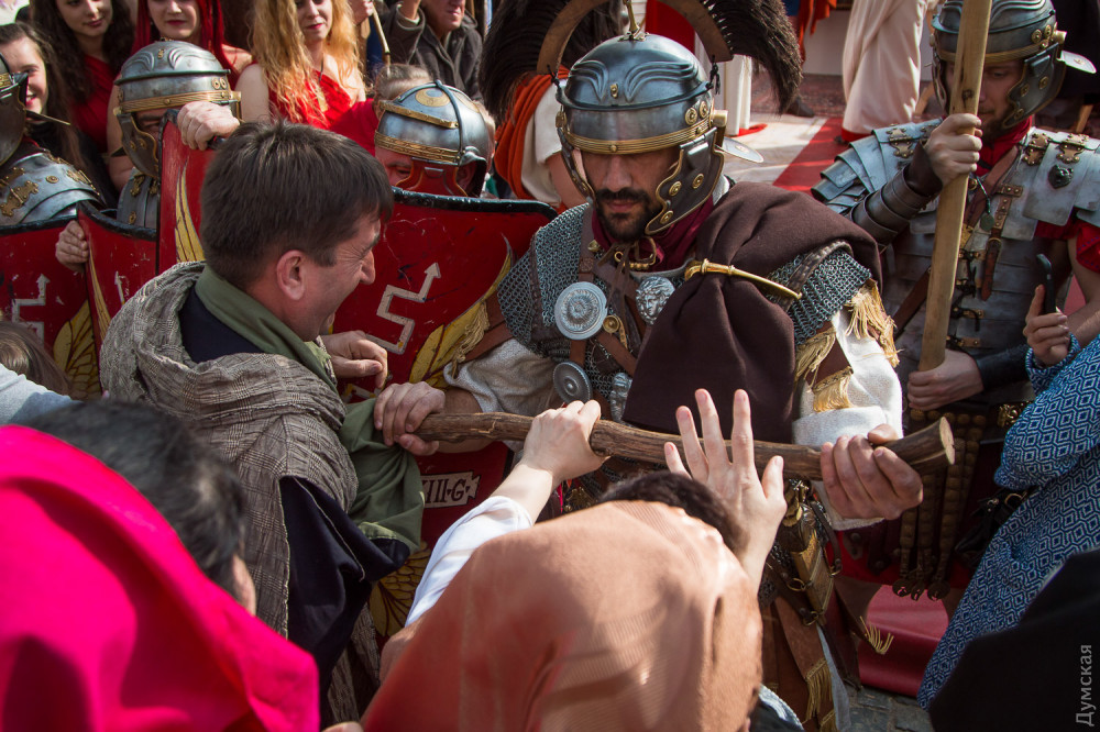 В помощь одесским реконструкторам, из года в год исполняющих роль бессердечных легионеров Римской империи, прибыло подкрепление в лице коллег из Румынии и Чехии. Особо колоритно смотрелся воин, облаченный в шкуру убитого медведя — дети, желающие сделать селфи, не отходили от него ни на шаг.