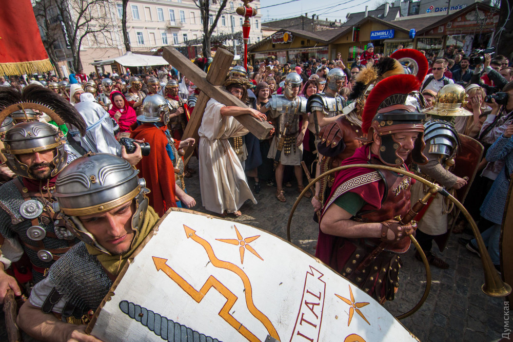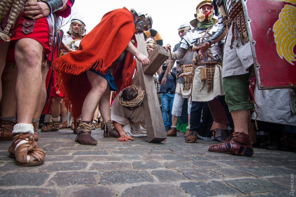Сегодня днем по главной улице города прошла уже традиционная пасхальная реконструкция — костюмированное представление в память о событиях, описанных в Новом Завете.