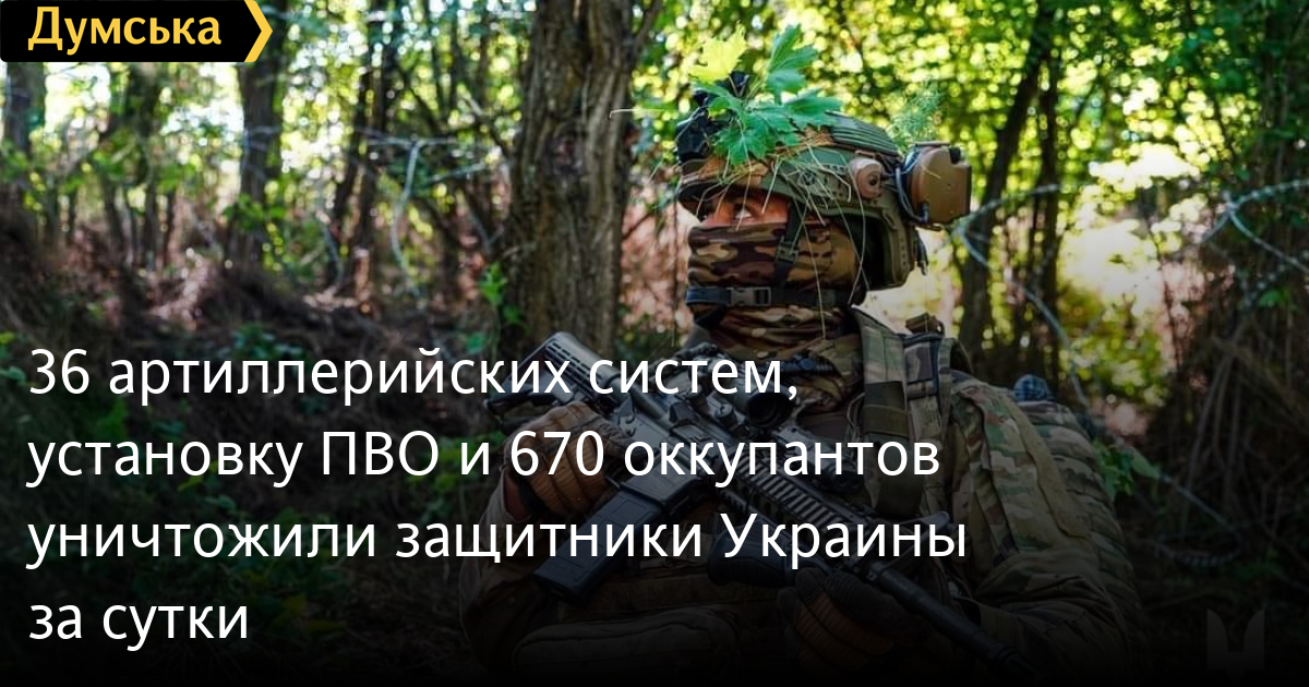36 артилерійських систем, установку ППО та 670 окупантів знищили захисники України за добуЩе 670 російських загарбників було демілітаризовано та денацифіковано 4 липня. Від початку повномасштабного вторгнення в Україну полягли вже 231 тисяча 700 ворожих солдатів і офіцерів. За даними Генерального штабу Збройних сил України, наші воїни вчора також спалили 36 ворожих артилерійських систем (4288 за весь час), дев'ять реактивних систем залпового вогню (656), 22 вантажівки та автозаправники (6865), вісім одиниць спецтехніки (598). Було знищено установку ППО (395), підбито три танки (4062), дев'ять бойових броньованих машин (7917). ППО збила 12 безпілотників оперативно-тактичного рівня (3614). СМЕРТЬ РОСІЙСЬКИМ ОКУПАНТАМ! Помітили помилку? Виділяйте слова з помилкою та натискайте control-enter |