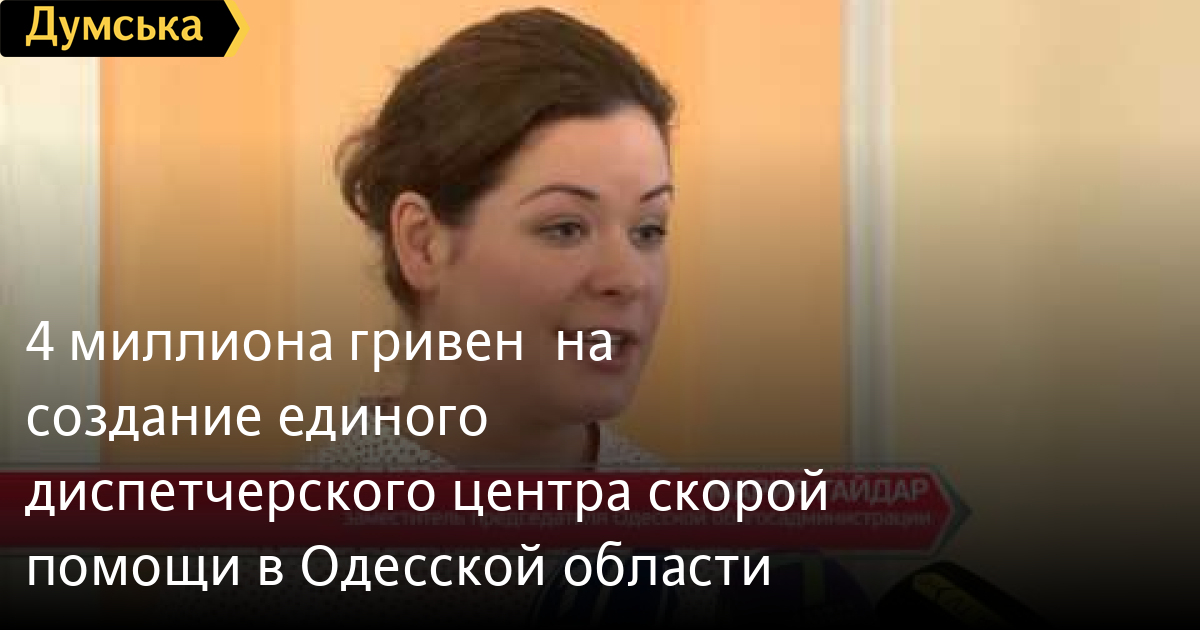 4 миллиона гривен – на создание единого диспетчерского центра «скорой помощи» в Одесской областиЧетыре миллиона гривен бюджетных средств обещают освоить в областной администрации всего за полтора месяца. Столько времени понадобится, чтобы реализовать первый этап создания единого диспетчерского центра «скорой помощи» в Одесской области. Его планируют открыть на базе уже существующей городской службы. СМЕРТЬ РОССИЙСКИМ ОККУПАНТАМ! Заметили ошибку? Выделяйте слова с ошибкой и нажимайте control-enter Думская ТВ. Сюжеты: