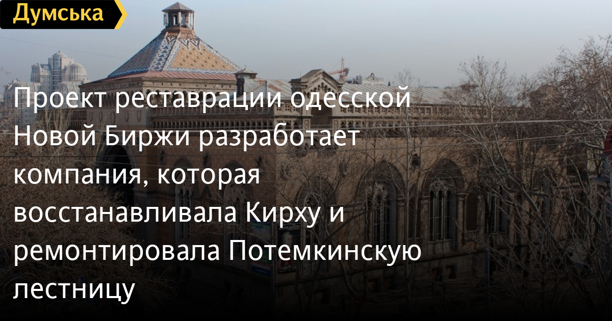 Проект реставрации здания Одесской областной филармонии — памятника архитектуры национального значения «Новая Биржа» — разработает ООО «Научно-производственный центр Экострой+».