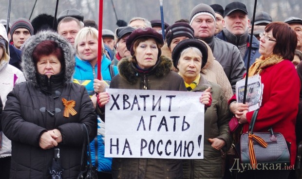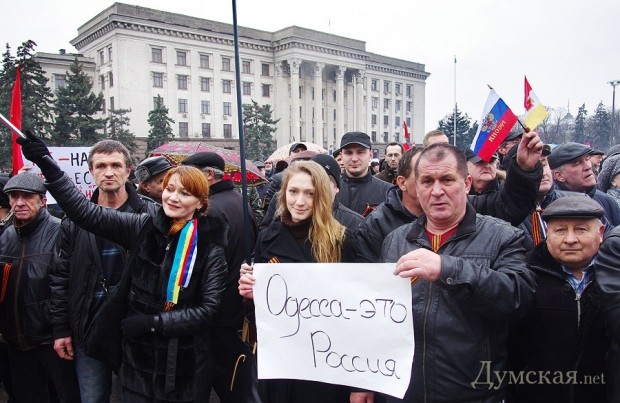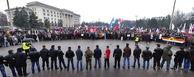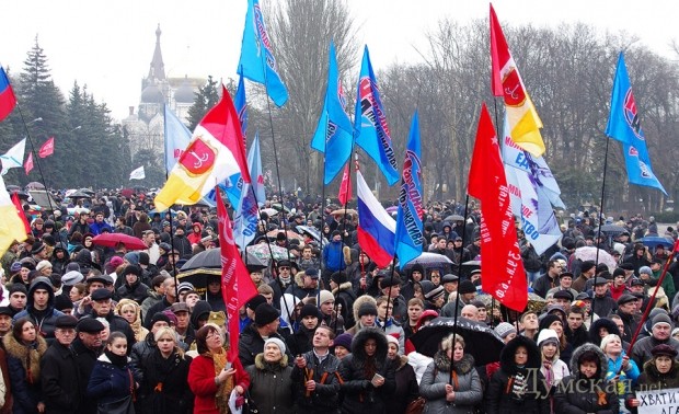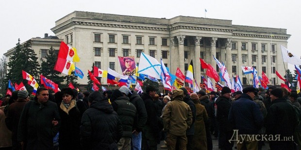 Сегодня в Одессе состоялся митинг пророссийски настроенных граждан. На Куликовом поле собралось около пяти тысяч человек. Некоторые были вооружены флагами и идеей, а некоторые — палками и арматурой.
