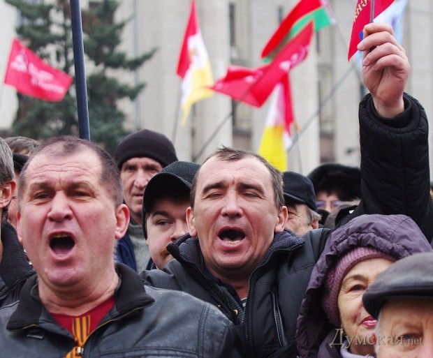 Участники митинга спустили флаг Украины с флагштока возле Дома профсоюзов. Потом его снова подняли — уже вместе с флагами Одессы и России. Собравшиеся выдвинули ряд требований, среди которых — проведение административной и судебной реформы, присвоение русскому языку статуса второго государственного, проведение референдума, на котором будут определены основные направления внутренней и внешней политики Украины, а также выборов в городской и областной совет, отмена пенсионной реформы. Еще одно требование — сделать должность губернатора выборной.