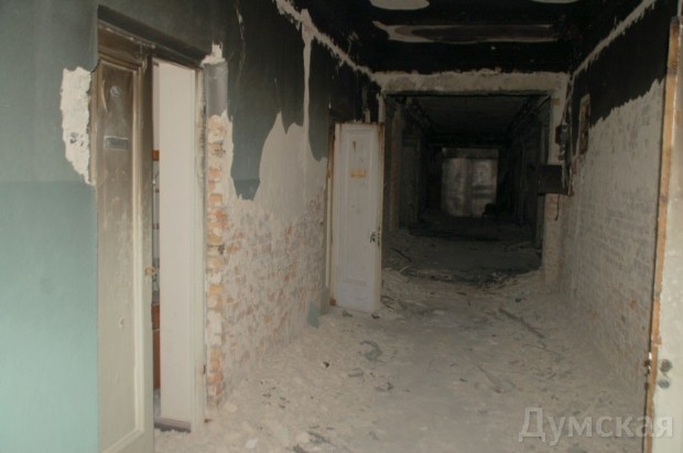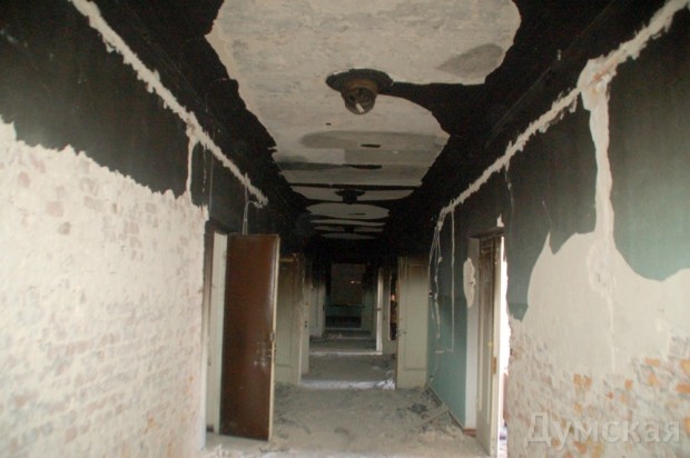 Даже если не знаешь всех подробностей трагедии, попав сюда, сразу понимаешь, что здесь случилось большое горе. Черные закопченные потолки, обугленные стены, обгоревшие двери на фоне обнаженной кирпичной кладки — вот типичная картина некогда помпезного здания обкома партии, которое в начале 80-х стало профсоюзной собственностью.
