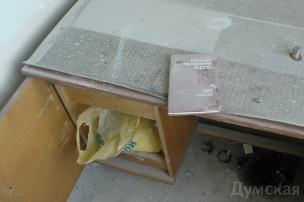 В этих коридорах и кабинетах не покидает ощущение остановившегося времени. И не коллекция календарей на 2014 год тому причиной — кажется, что время здесь остановилось гораздо раньше. Это ощущение усиливают и безлюдные пространства, и допотопные пишущие машинки, и даже невесть как сохранившийся в кабинете сборник постановлений ВЦСПС за четвертый квартал 1986 года.