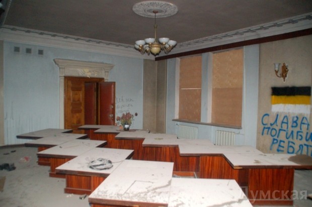 Еще через несколько недель в Доме профсоюзов начались форменные вакханалии. Все, что можно было разворовать, к тому времени разворовали. Некоторые кабинеты начали использовать для попоек, а соседние — в качестве общественных туалетов. 20 мая здание оградили забором, с тех пор вход в Дом профсоюзов ограничен.