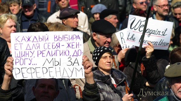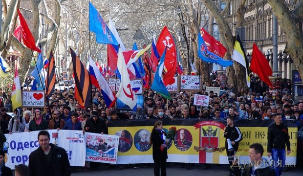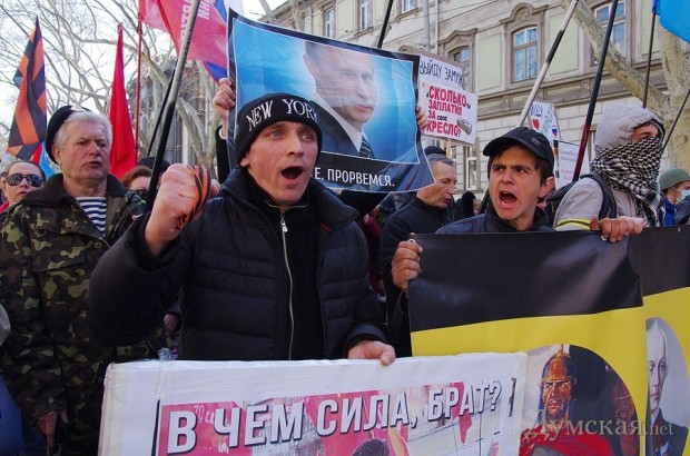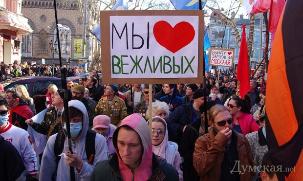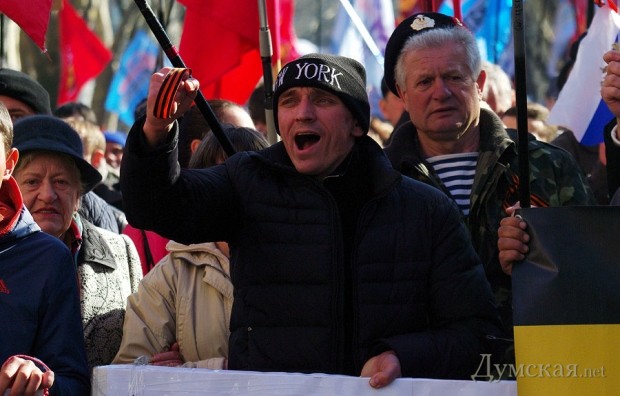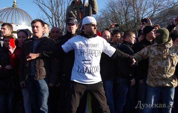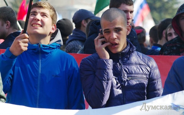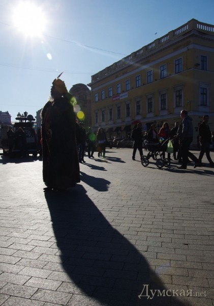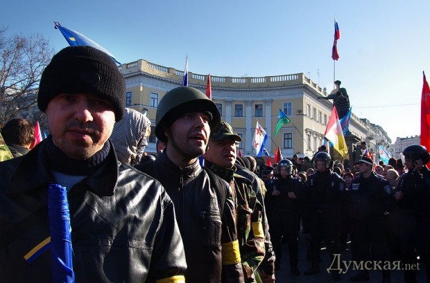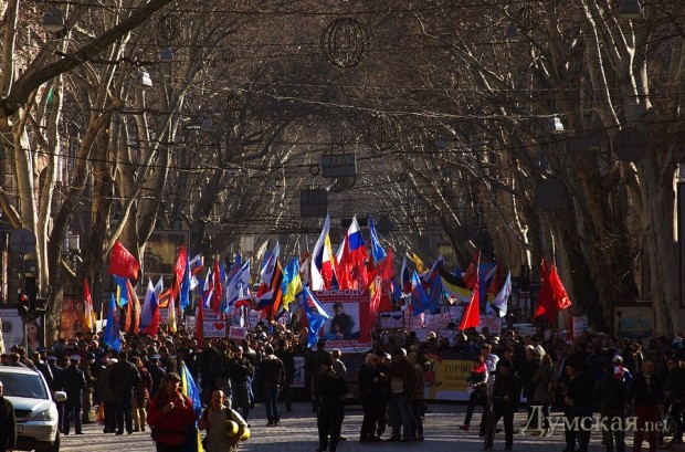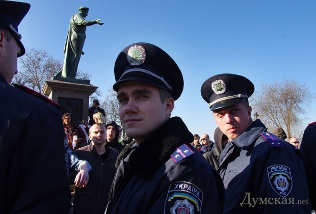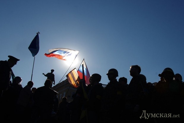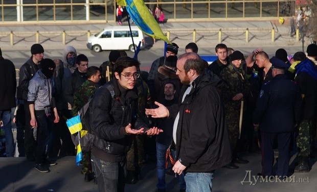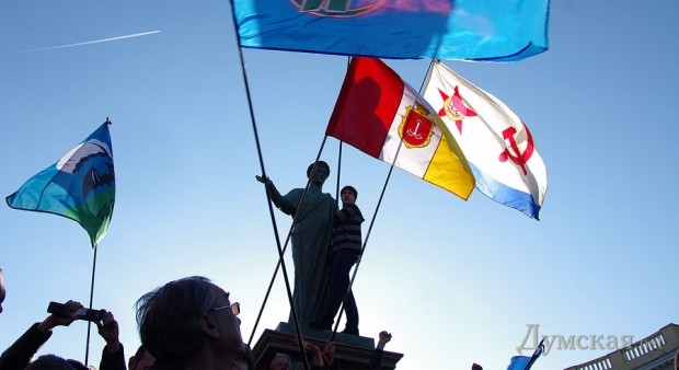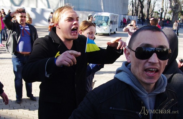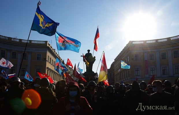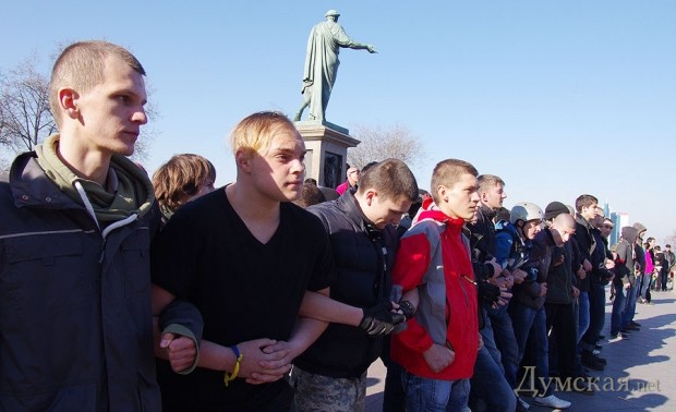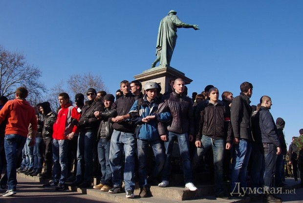 В итоге, оказавшись в критическом меньшинстве, проукраински настроенные граждане вынуждены были ретироваться и спустились на пару пролетов по Потёмкинской лестнице. Их оппоненты, одержав, скорее, моральную победу, прошлись к памятнику Основателям города, после чего разошлись.
