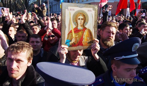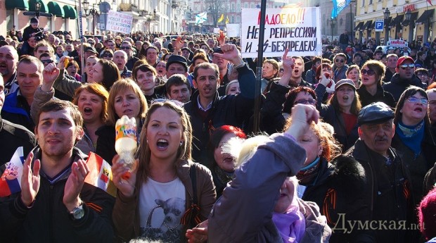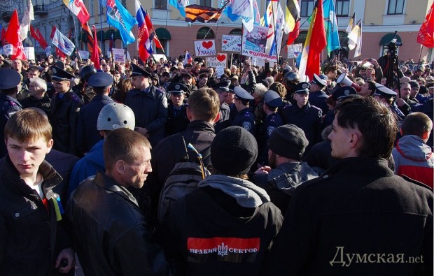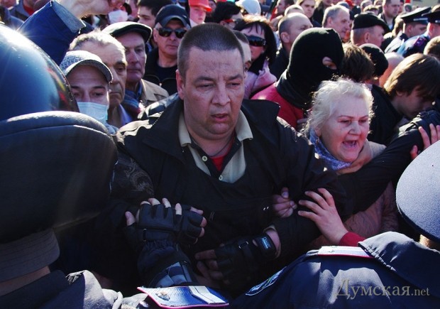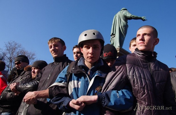 Воскресные пророссийские бдения, регулярно проводимые на Куликовом поле в Одессе, сегодня едва не переросли в массовые беспорядки. Началось все традиционно, после обеда. «Свободу Давидченко», «Федерализация», «Путин, прими нас к себе», — никаких новых идей со сцены не озвучивали. Даже про экс-призедента все забыли. Однако через какое-то время, внезапно даже для многих участников собрания, кто-то решил «прогуляться» к памятнику Дюку.