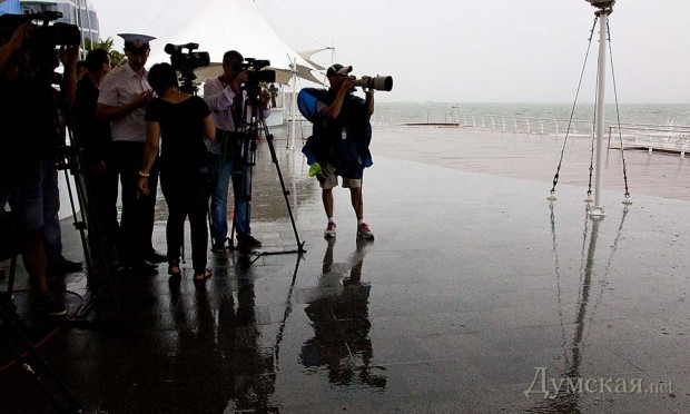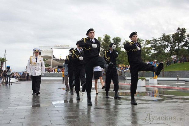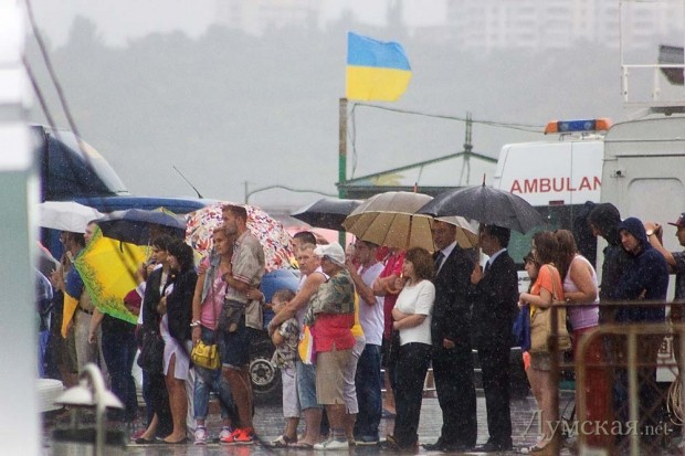 А дождь в плане постановки парада, ИМХО, наоборот — сыграл на руку. Корабли появлялись из-за завесы дождя, как актёры из-за кулис.