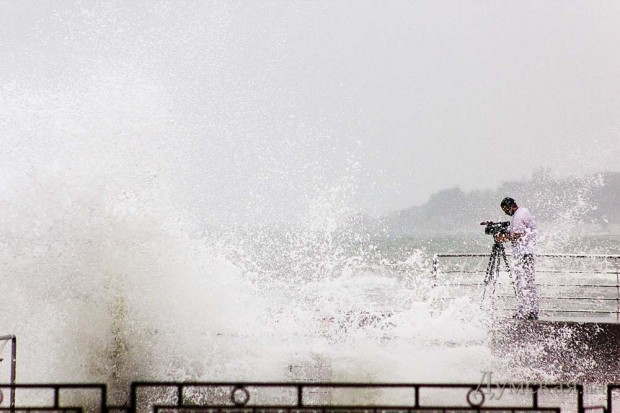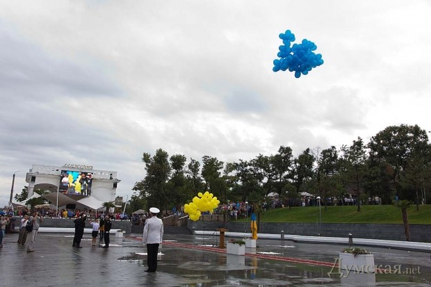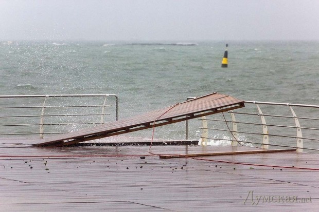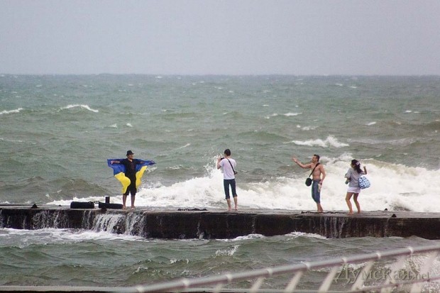 На Ланжерон не поехали, вышли на \«капитанский мостик\» в парке на Литературной (около \«Белого Паруса\»). Шли и смеялись — вот, мол, два идиота: все от дождя бегут по машинам--трамваям-подъездам, а мы вдвоём через ливень и ветер — идём к морю)