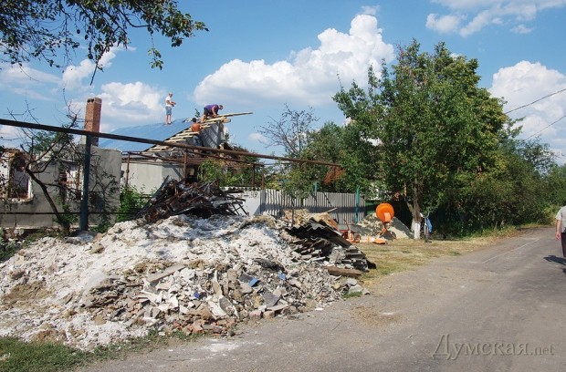 Пригородам, через которые в начале лета проходила линия фронта, повезло меньше. Так, например, село Селезневка, куда усилиями одесситов была доставлена фура шифера (без малого тысяча листов!), пострадало очень сильно. После артобстрелов две трети местных домов лишились крыш, а каждый десятый и вовсе сгорел. В качестве иллюстрации нам показывают разрушенный ФАП. Поселковый голова говорит о том, что для починки всех кровель сюда нужно завести не менее пяти таких же грузовиков со стройматериалами. А пока то, что есть, будут делить по заявкам.
