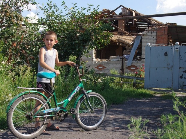 Отвязавшись от мэра, бродим по Селезневке самостоятельно. Немногие местные жители приглашают в гости. У кого-то снаряд только залетел в огород, перебив птицу или спалив старенькую «Славуту», а у кого-то в буквальном смысле не осталось и крыши над головой. Детвора хвастается трофеями. Которые постарше – тактично интересуются, когда ждать нашего следующего визита. Вниманием «гуманитарных» организаций здесь явно не избалованы. Неделю назад наведались с миссией волонтеры ООН, но помогли только наклейками. Этот жест со стороны «цивилизованного мира» лишь укрепил местных жителей во взглядах относительно России. Гончаренко (организатор всего марафона и этой конкретной поездки) об этом уже написал. «Потому что Путин» — по-прежнему главный аргумент во всех здешних спорах.