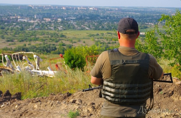 Возвращаемся обратно в город. Там нас встречает и.о. главы администрации Славянска, бывший начальник горловского горУВД полковник милиции Андрей Крищенко. Он провожает нас на Карачун – господствующую высоту, с которой долгих три месяца боевые укры обстреливали славянских сепаратистов. Отсюда как на ладони видны и Славянск, и Краматорск, и вообще весь район.