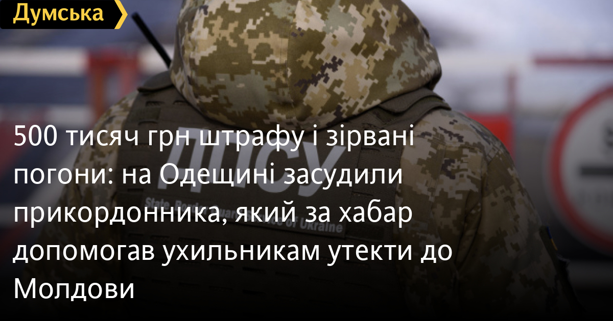 500 тисяч грн штрафу і зірвані погони: на Одещині засудили прикордонника, який за хабар допомогав ухильникам утекти до МолдовиДо штрафу в розмірі 499 тис. 800 грн засудив Білгород-Дністровський міськрайонний суд співробітника Держприкордонслужби, який за гроші допомагав військовозобов'язаним тікати в Молдову. Крім того, його позбавили військового звання «старший сержант». Суд визнав прикордонника винним в одержанні неправомірної вигоди та незаконному переправленні особи за державний кордон. Злочин було скоєно в жовтні 2022 року. Прикордонник отримав від трьох громадян по 2500 доларів США і пообіцяв відвезти їх на своєму автомобілі Daewoo Lanos на транзитну ділянку дороги Одеса-Рені в районі Паланки, де висадити, щоб вони могли виїхати в РМ. Перший рейс він здійснив успішно, під час другого його затримали. Свою провину військовослужбовець визнав повністю й уклав відповідну угоду з прокуратурою. СМЕРТЬ РОСІЙСЬКИМ ОКУПАНТАМ! Помітили помилку? Виділяйте слова з помилкою та натискайте control-enter |