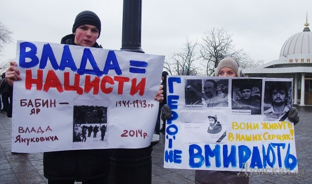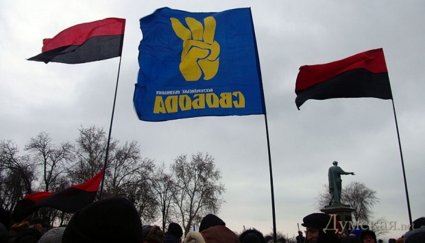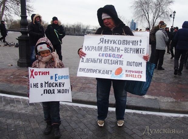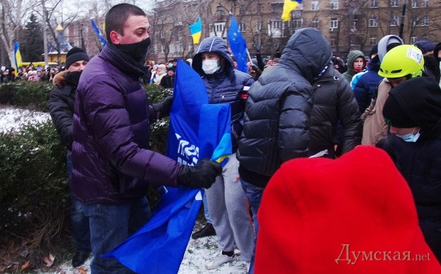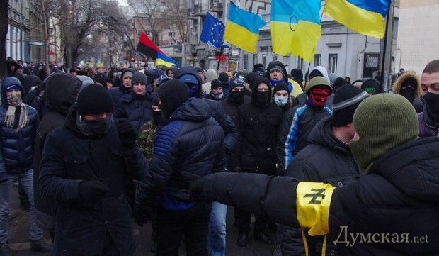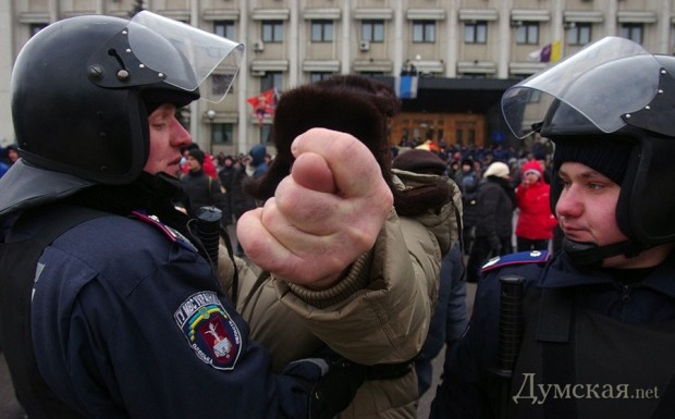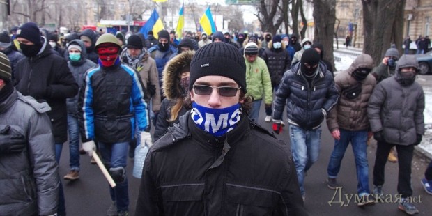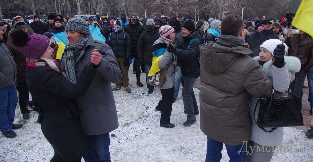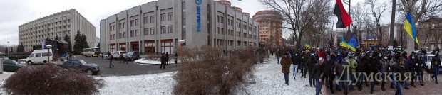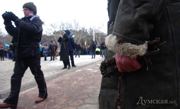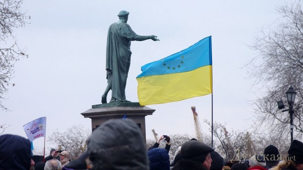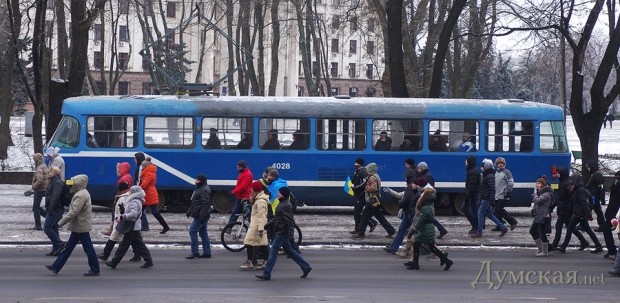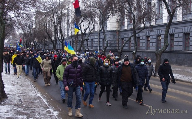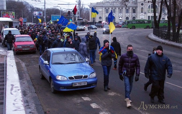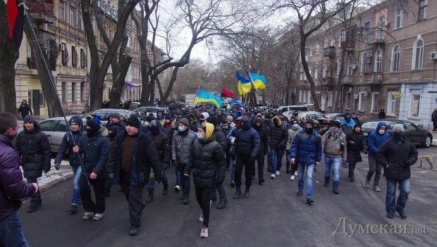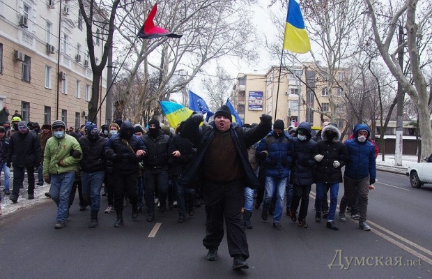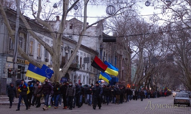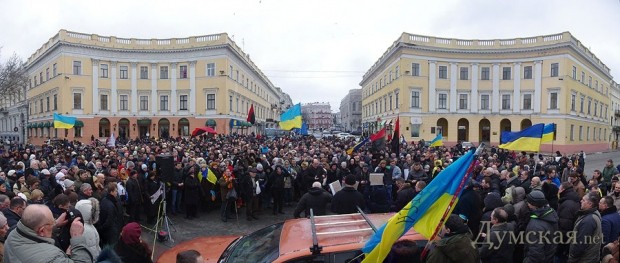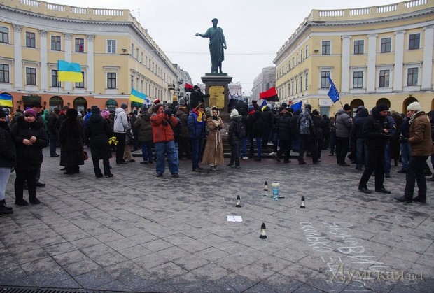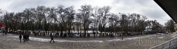Сегодня по Одессе туда-сюда шатались оппозиционеры. Сначала они провели у Дюка митинг в память о погибших на киевском «Евромайдане», после чего шумной колонной прошлись к областной администрации уже под присмотром более радикально настроенных «организаторов». Впрочем, все обошлось: поиграв электоральными мышцами у стен ОГА, где выстроились сторонники власти, оппозиционеры вернулись к мэрии, шуганули тамошних защитников и разошлись по домам.