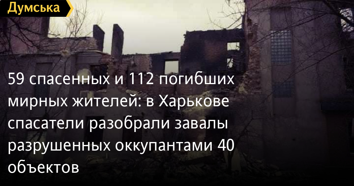 В Харькове спасатели ГСЧС завершили работу на 40 разрушенных оккупантами объектах. Из-под завалов извлекли тела 112 мирных жителей, в то же время удалось спасти 59 человек.