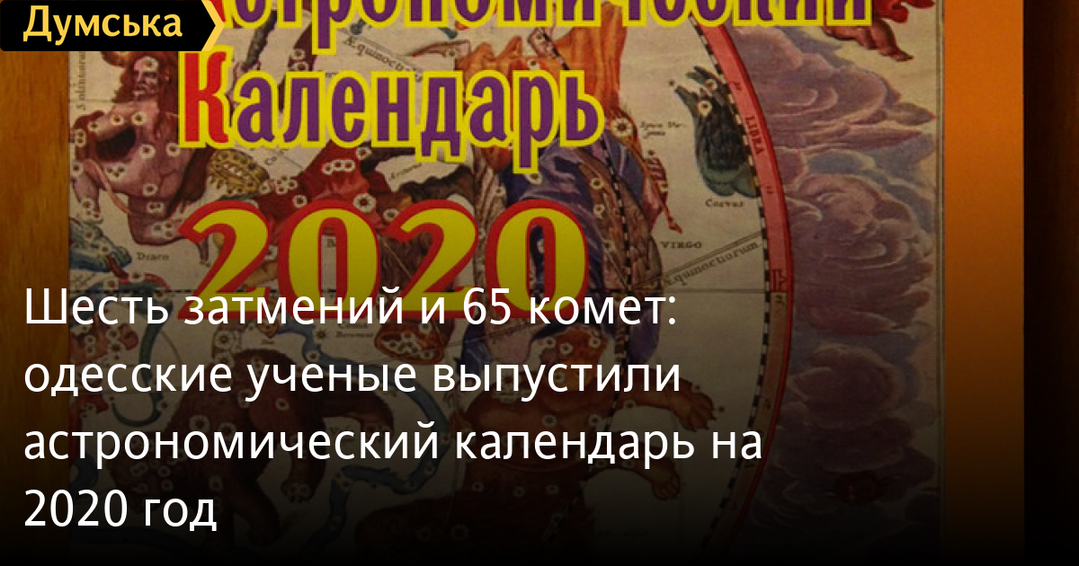 Шесть затмений и 65 комет: одесские ученые выпустили астрономический календарь на 2020 годСотрудники Одесской астрономической обсерватории ОНУ имени Мечникова презентовали астрономический календарь на 2020 год. Среди самых значимых астрономических событий года – лунные и солнечные затмения, противостояние Земли и Марса и метеорный поток Персеиды. История астрономического издания берет свое начало в 1918-м году. Календарь выходил всего пять лет и ввиду сложной политической и общественной обстановки вынужден был прекратить свое существование. Возродили традицию выпуска календаря только в 1999 году – с тех пор он выходит ежегодно. «Наш календарь расходится по всем странам СНГ и аналогов на русском языке на сегодняшний день нет», — говорит директор астрономической обсерватории ОНУ, профессор Сергей Андриевский. Ученые обсерватории, вовлеченные в этот проект, называют календарь не иначе как прикладной энциклопедией о Вселенной. Он состоит из двух частей, одна из которых посвящена астрономическим событиям года, а другая – популярным статьям об уникальных небесных явлениях и выдающихся личностях в области астрономии. В частности, ученые подготовили интересный доклад об истории календаря империи инков. Этот год, по словам доцента кафедры теоретической физики и астрономии Александра Базея, будет урожайным на количество лунных и солнечных затмений – их ожидается целых шесть. Однако в Одесском регионе большинство из них будут не столь зрелищными. «Лунные затмения без специальных приборов будут вообще не видны глазу, а вот солнечные будут более внушительными. 21 июня утром будет видно солнечное затмение», — говорит профессор. Год будет интересным и с точки зрения наблюдений за планетами. Самая близкая к нам планета Меркурий будет хорошо видна вечером 30 мая и утром в первой декаде ноября. Марс будет удобно наблюдать 14 октября, когда он окажется на минимальном расстоянии к Земле, Юпитер будет доступен для наблюдений 14 июля, Сатурн – 21 июля, а Венера — 25 марта и 3 июня. «Сейчас ее тоже очень хорошо видно по ночам и буквально раз в неделю мне звонят с заявлениями, что видят НЛО, которое неподвижно висит в небе. Приходится им объяснять, что это банальная Венера», — говорит Александр Базей. В течение года ожидается прохождение через перигелий (ближайшая к Солнцу точка орбиты) 65 комет, из которых видны невооруженному глазу будут только две. 12 августа пройдет самый красочный в году метеорный поток Персеиды. Ученые подчеркнули, что при наблюдении за астрономическими явлениями категорически запрещено использовать оптические приборы, так как это может привести к стойкой потере зрения. Можно использовать затемненное либо подкопченное стекло. В планах обсерватории – открытие музея. По словам директора, сейчас идут работы по поиску помещения и финансов, для проведения в нем ремонта. Среди экспонатов, которые в будущем займут место в музее – старинные хронометры XV-го века, инструменты для наблюдений, которые использовались в походах, пассажные инструменты, меридианный круг, секстанты, по которым определялись координаты кораблей в море, приборы сделанные инженером Иосифом Тимченко и многое другое. К слову, в следующем году одесская обсерватория отметит 150-летний юбилей. Автор — Надежда Маркевич СМЕРТЬ РОССИЙСКИМ ОККУПАНТАМ! Заметили ошибк