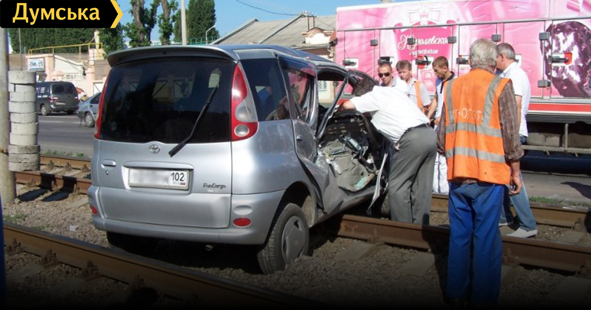 В Одессе трамвай протащил по рельсам автомобиль россиянки