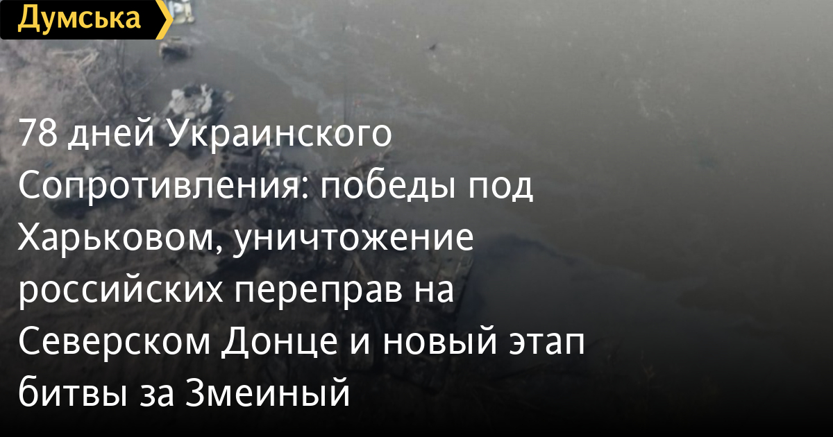 Ждем ответной реакции со стороны украинского командования, хотя, вероятно, она уже последовала. Так, «24 телеканал» со ссылкой на свои источники в разведке сообщает о пожаре, который вспыхнул в ночь с 11 на 12 мая на многоцелевом судне тылового обеспечения проекта 23120, шедшем к Змеиному. Судно отбуксировали в Севастополь, дальнейшая его эксплуатация невозможна. Таких в россии только два - «Всеволод Бобров» и «Эльбрус».