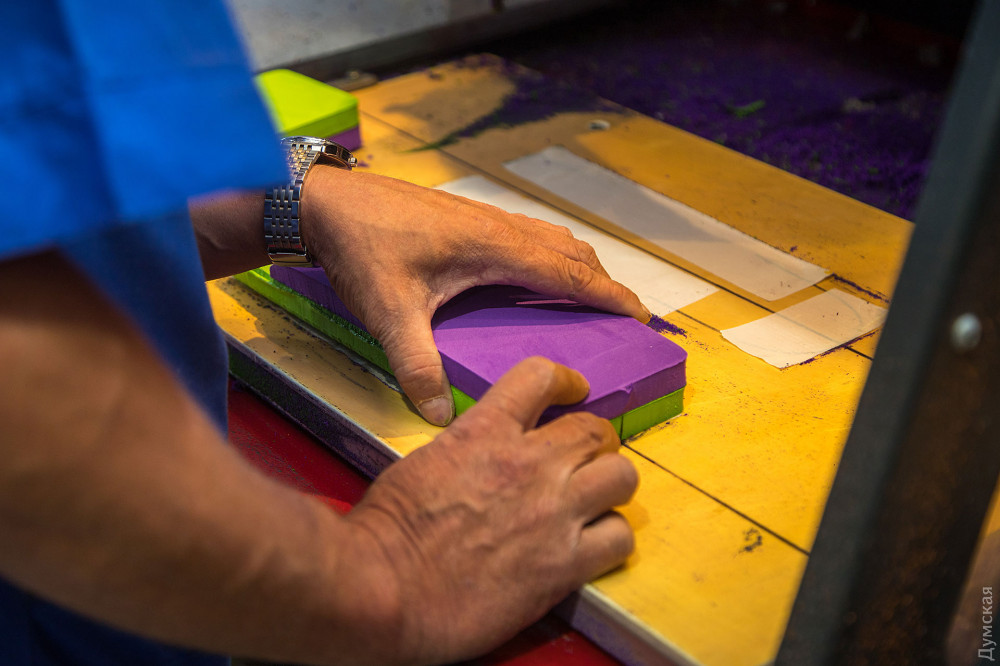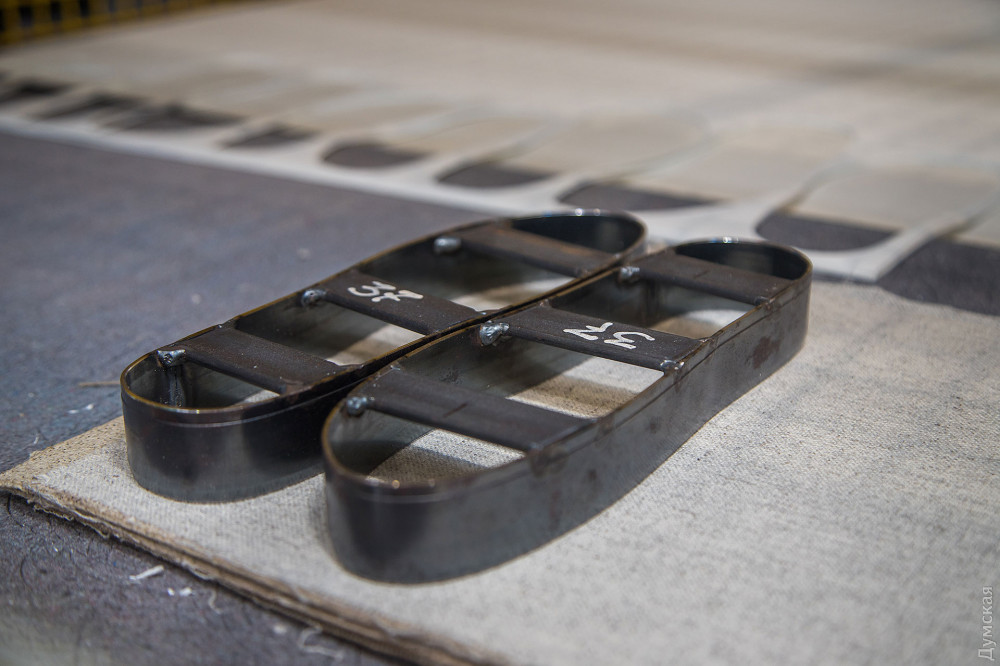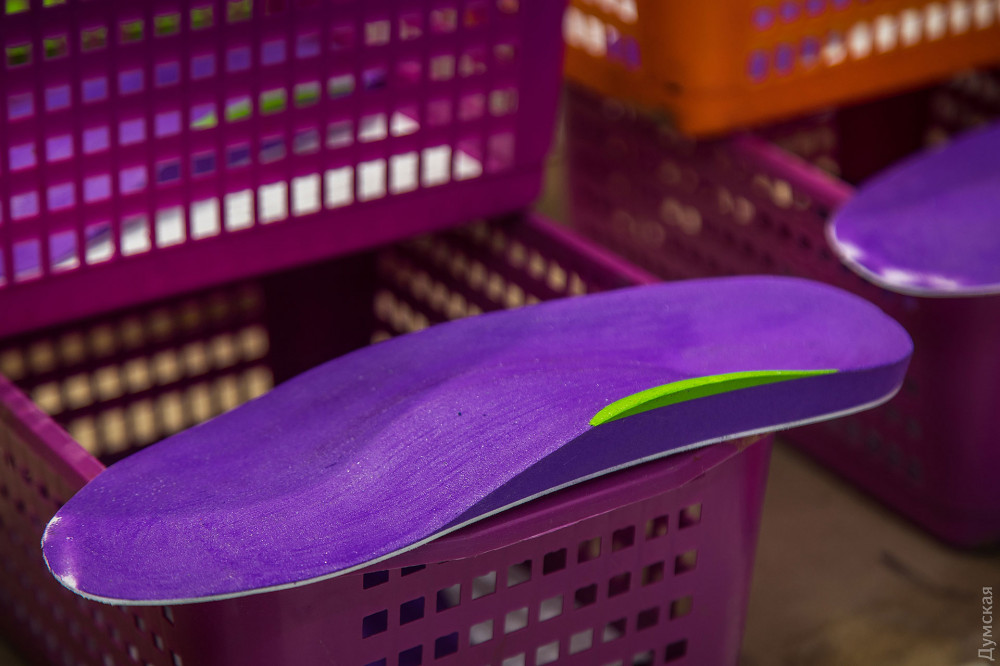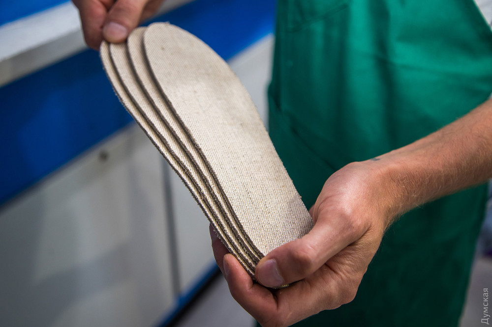 Композит готовят в Вапнярке. Там же к нему приклеивают два слоя конопляной ткани. В Одессе получившийся «сэндвич» разрезают на аккуратные стельки. Предприятие, любезно согласившееся предоставить Игорю рабочее место, станок и технологическую помощь, достойно отдельной главы в нашей заметке. Это фабрика Arvitum, ведущий производитель индивидуальных ортопедических стелек в Украине. Расположена мануфактура на Дальницкой улице — на территории бывшего завода «Кинап».