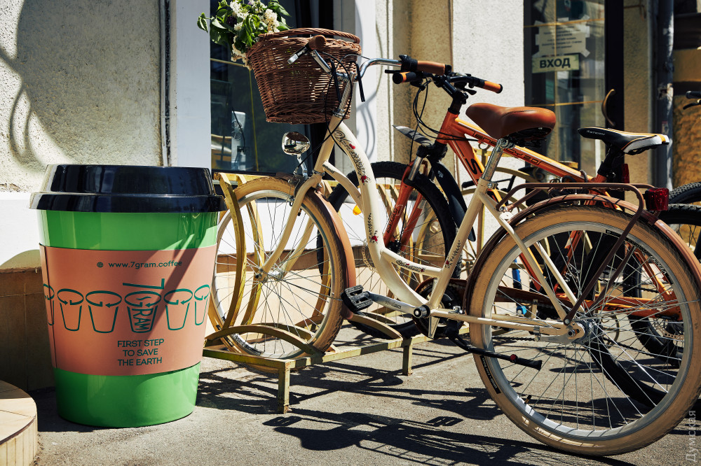 «Эти урны будут стоять на дороге от Южного до Одессы, — рассказывает известный одесский фильммейкер Игорь Рябчук, который в 7Gram отвечает за маркетинг. — Мы уже договорились с «Ривьерой», ведем переговоры с заправками SOCAR и WOG. По этому маршруту будет ездить автомобиль. Еще один маршрут планируется по центру города, по тем кофейням, которые поддерживают нашу философию».